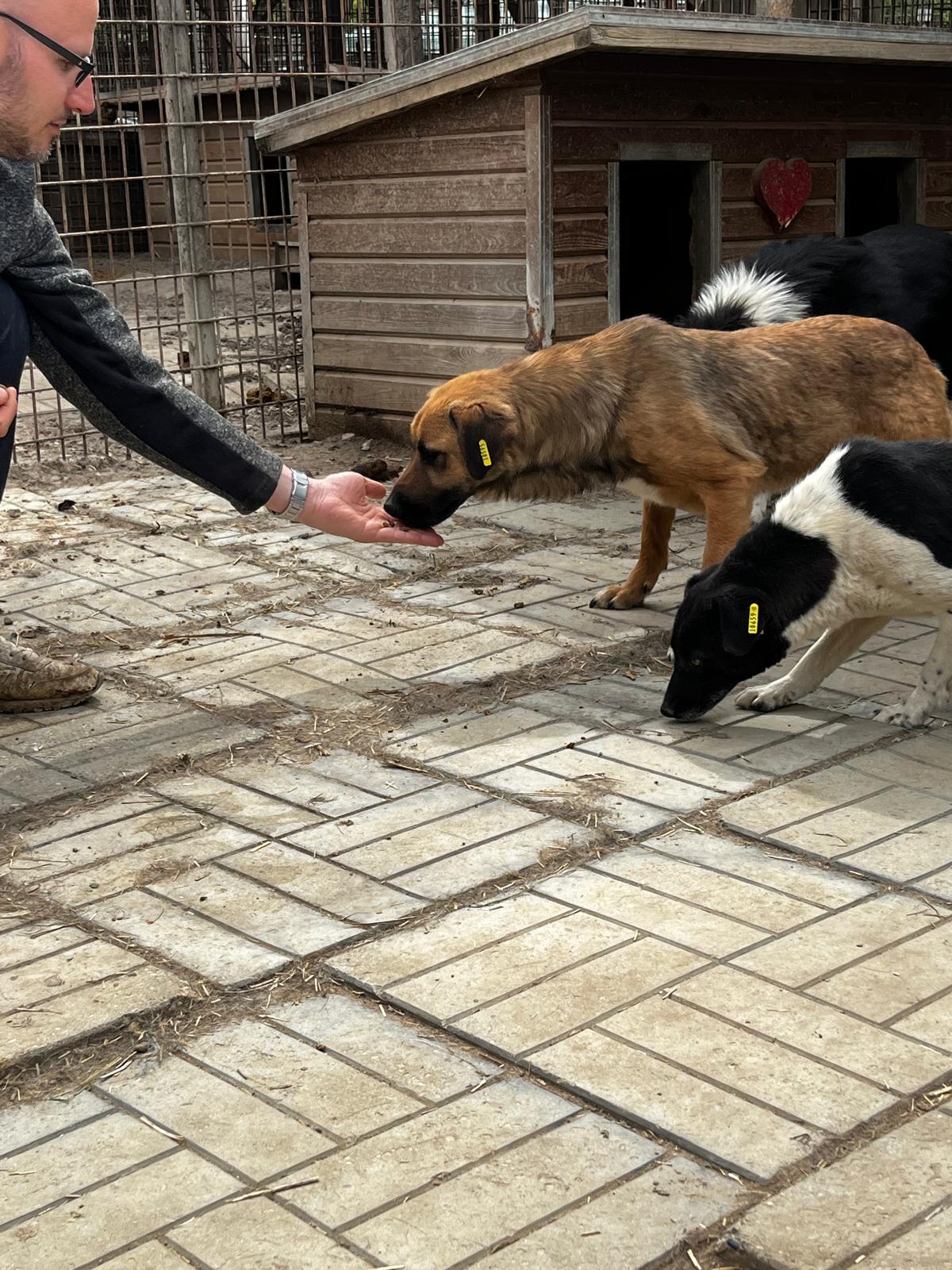 Er nahm seinen ganzen Mut zusammen und wir waren überrascht, was doch möglich ist, wenn man viel Ruhe ausstrahlt. Der junge Bub war unsicher, aber total begeistert von unseren Leckerlis, zum Anfassen verließ ihn dann doch der Mut. Wir sind sicher, dass er zügig auftauen könnte, denn man merkte ihm an, dass er unbedingt möchte.