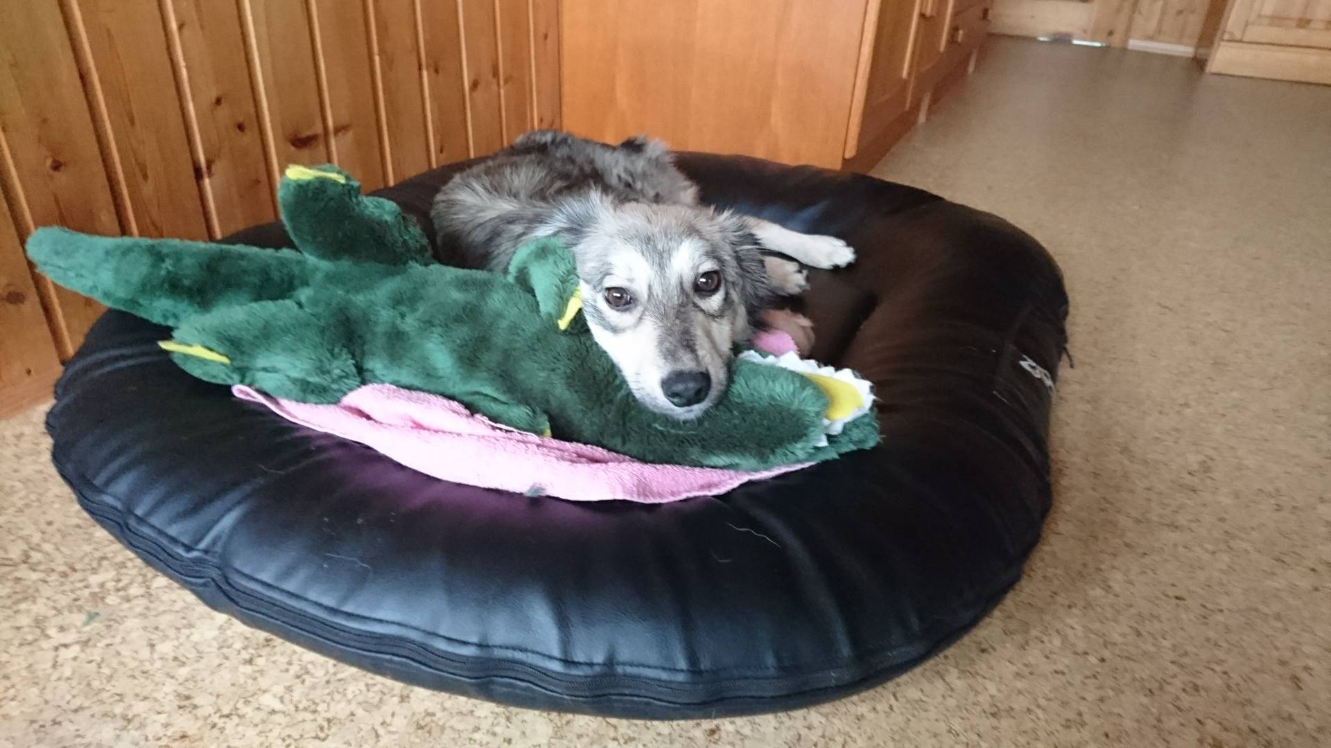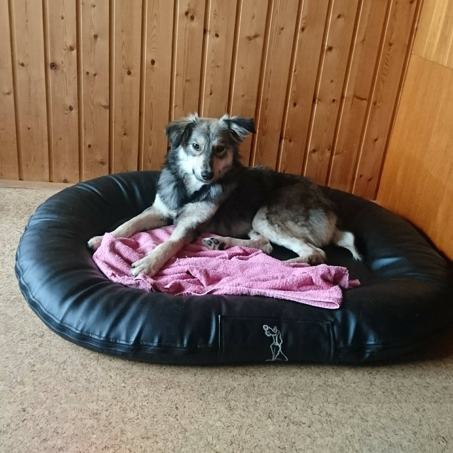 Mit ihren Hundekumpels lebt sie ohne Probleme zusammen und bleibt mit diesen auch für kurze Zeit alleine.