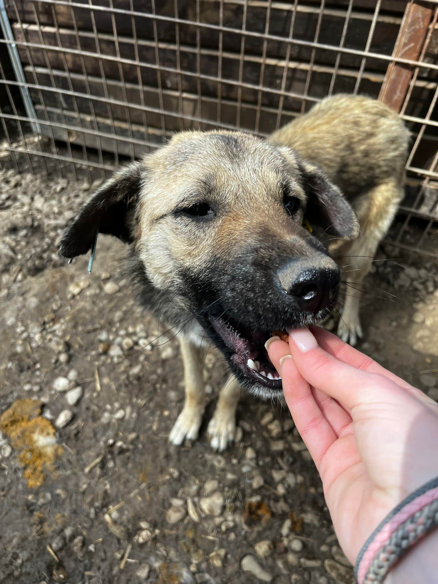 Eine tolle Hündin; schon so lange muss sie ausharren und dennoch hat sie sich die Neugier und Freundlichkeit bewahrt. Nach einem kurzen Zögern konnte sie die Leckerchen nehmen und war auch freundlich an unserer Seite dabei.