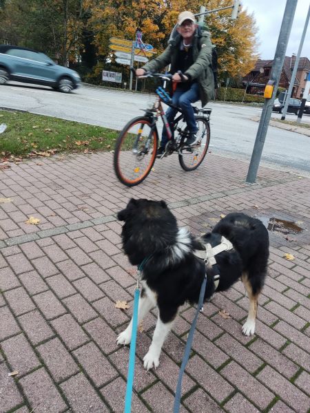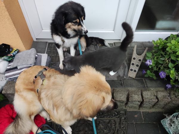 Die hundeerfahrenen Katzen gehören für Marlene mit zum Rudel. Sie ist stubenrein, schläft nachts durch, kann eine angemessene Zeit alleine bleiben, macht nichts kaputt, dekoriert nichts um und sie kann gut im Auto mitfahren. Bett und Sofa sind hier tabu, das wird von ihr akzeptiert. Gekuschelt wird dennoch auf unserem extra dafür bereitgestellten Meeting Point.