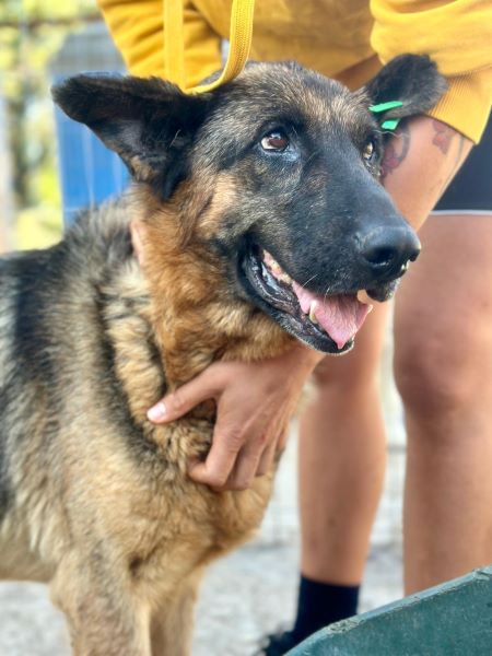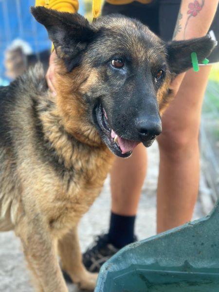 Tolle Schäferhündin, die ab der ersten Sekunde zutraulich war. Obwohl sie in einer gemischten Gruppe lebt und dies auch funktioniert, fänden wir für diese menschenbezogene Schäferhündin einen Einzelplatz besser. Sie wirkte in der Gruppe etwas dominant. Mit ausreichend Hundeerfahrung im Hundemanagement bei gemischter Hundehaltung kein Problem, aber in der Regel haben wenige Halter darauf Lust bzw. das Können. Mit Hunden, die ihr ihren Platz in der Gruppe nicht streitig machen möchten, wie z.B. der gechillte Labby im Video, kein Problem.