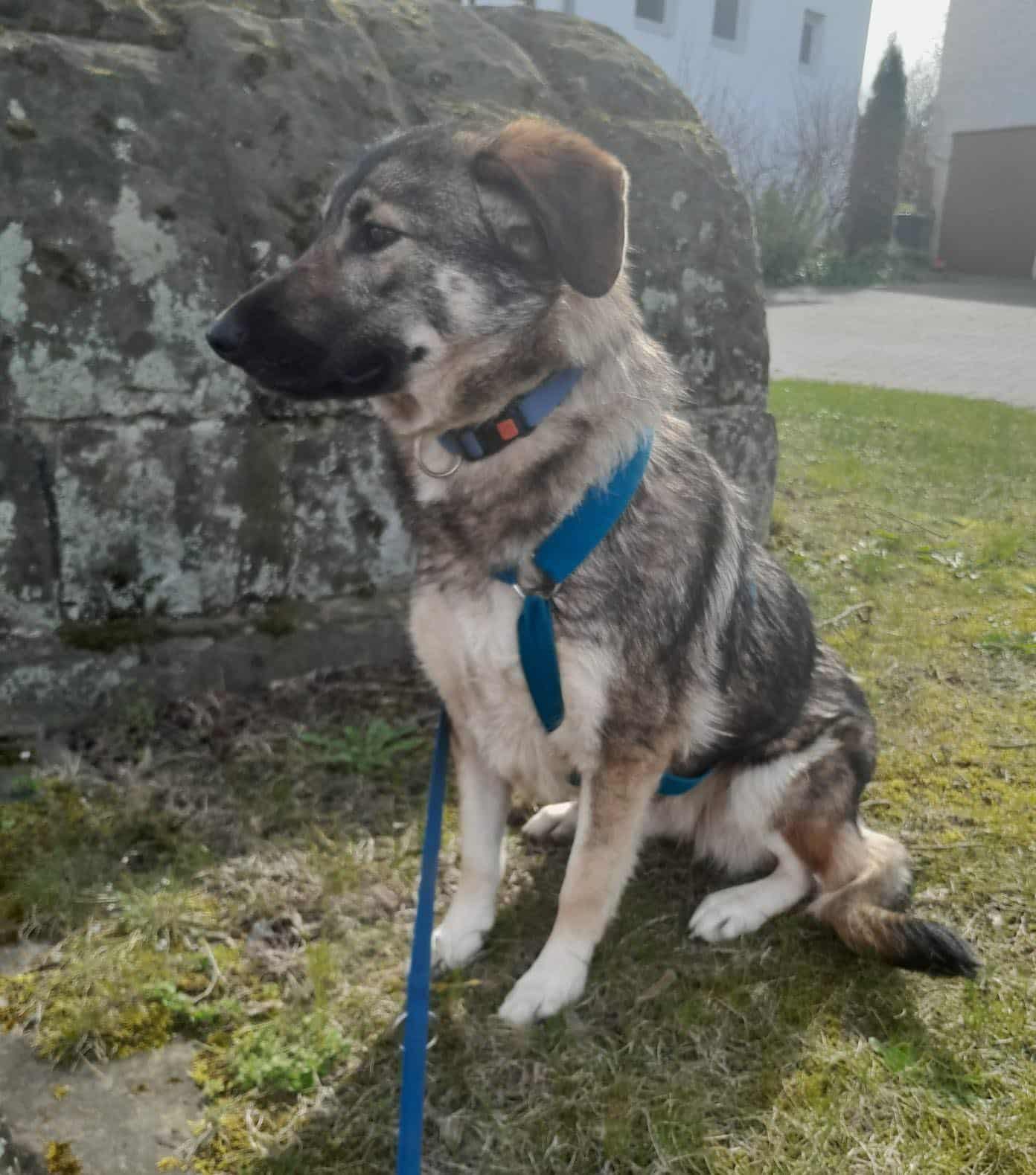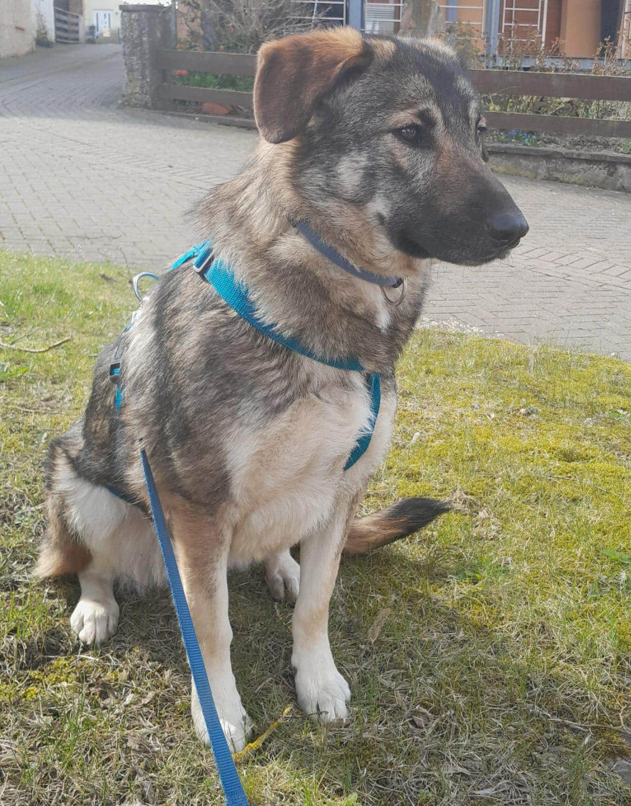 Sie ist sehr anhänglich und baut schnell Bindung auf, Geschirr anziehen und Leine dran machen ist tägliche Routine, genauso wie der tägliche Gang mit in den Pferdestall und auch kleinere Spazierrunden macht sie völlig selbstverständlich mit. Über größere tägliche Runden in die Natur würde sie sich sicherlich freuen. Dann würde sie sicherlich noch etwas abspecken und dafür ein paar Muskeln mehr aufbauen. Im Haus sehr ruhig, ist sie draußen schon neugierig und hat Spaß daran die Welt zu erkunden. Bei Begegnungen mit anderen Menschen ist sie noch etwas vorsichtig, da muss noch etwas Routine aufgebaut werden, was sicherlich keine große Herausforderung an ihre neue Familie ist.