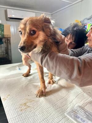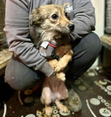 Im Januar 2025 sahen wir sie (Bruder und Schwester) das erste Mal im Käfig in Bucov sitzen. 3 Monate später – immer noch. Man kann sie nicht mehr behandeln, wenn sie im Kennel sitzen. Ihr Bruder ist dafür zu bissig. Das geht nur im Käfig und das ist bereits sehr schwierig.