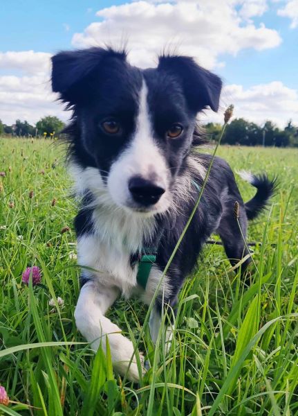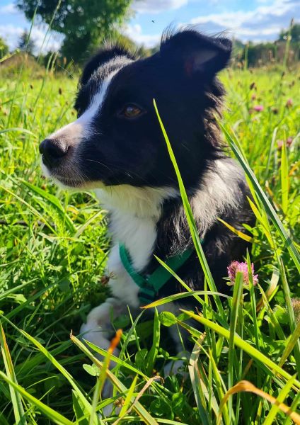 Marnie geht sehr gerne spazieren und ist umweltsicher. Ein wenig jagdliches Interesse ist zwar vorhanden, aber sie orientiert sich auch sehr gut an ihrem Menschen.