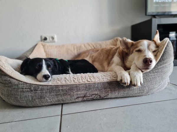 Marnie ist stubenrein, fährt gut im Auto mit, läuft problemlos Treppen und benimmt sich brav im Haus. Alleine bleiben klappt im Rudel auch gut, am Liebsten ist sie aber immer bei ihrem Menschen. Marnie wäre sicherlich auch als Bürohund geeignet.