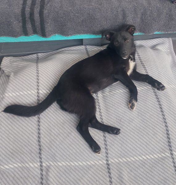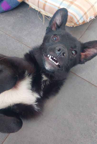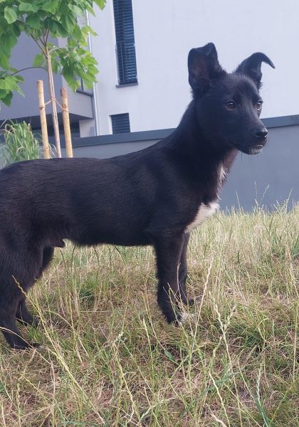 Von Anfang an zeigt er sich offen, fröhlich, gut und gerne anfassbar, verschmust und welpentypisch verspielt. Mit anderen Hunden ist er sehr verträglich und würde sich sicher über einen souveränen Ersthund im neuen Zuhause freuen. Bei ausreichend Kontakt zu Artgenossen ist dies jedoch kein Muss.