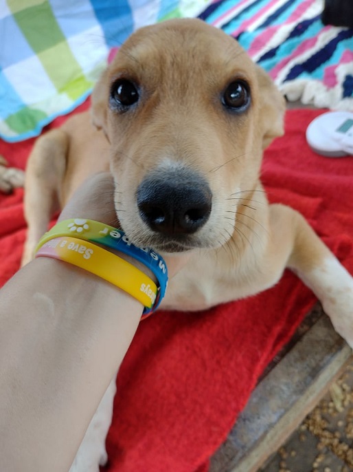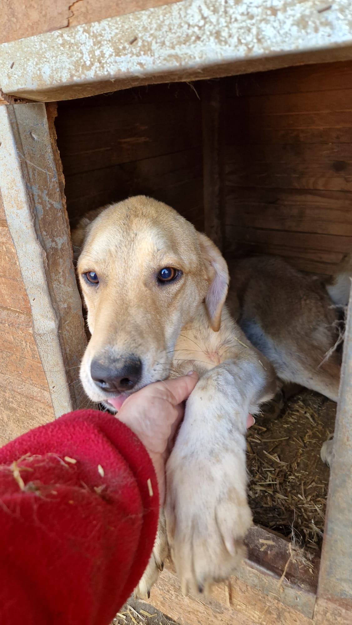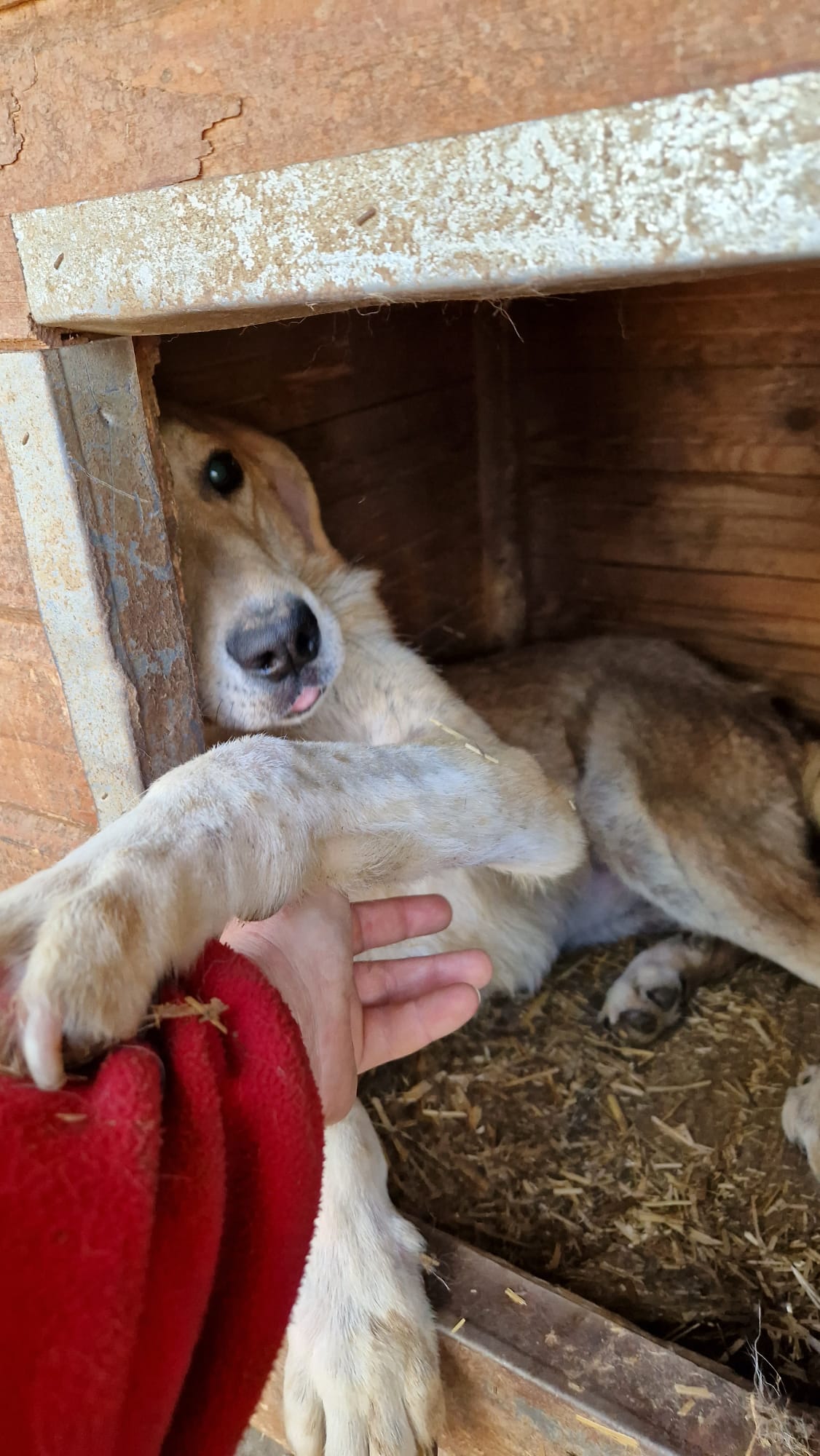 Sie ist weiterhin eine sehr freundliche Hündin, eher ruhiger und gelassen, die sich problemlos von uns streicheln ließ. Da sie derzeit körperlich eingeschränkt ist, verzog sie sich in eine Hütte, um nicht zwischen das Gewusel der anderen Hunde zu geraten. Sie hat sich über unsere Streicheleinheiten gefreut und ganz sanft nach uns gepfötelt.