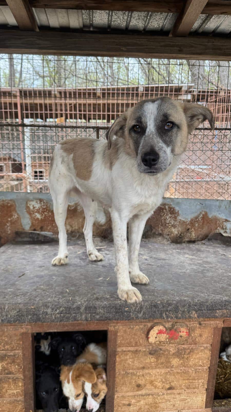 Die liebe MARTHA ist eine ganz tolle Hündin. Sie hat nicht nur ihre Welpen liebevoll großgezogen, sondern war jetzt auch noch für mehrere andere Welpen eine Ersatzmama. Inzwischen sind die kleinen alt genug, aber MARTHA hat leider noch keinen Platz gefunden. So sitzt sie nun mit neun aufgeweckten, verspielten Junghunden zusammen in einem kleinen Zwinger, und die Minis balgen und toben den ganzen Tag. MARTHA tat uns sehr leid, denn sie als erwachsene Hündin ist von diesem 24/7-Trubel verständlicherweise genervt. Um mal eine Pause von den Kleinen zu bekommen, sitzt sie die meiste Zeit auf dem Hüttendach und wartet dort. Als wir sie besucht haben, war sie total glücklich über unsere Zuwendung und ließ sich gut anfassen und überall streicheln. Sie ist zutraulich und hat ein angenehmes Temperament. Wir wünschen uns sehr, dass MARTHA bald entdeckt wird. Sie ist wirklich eine ganz tolle Hündin!