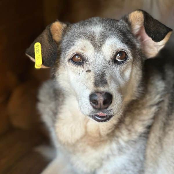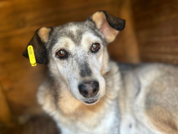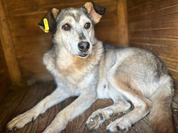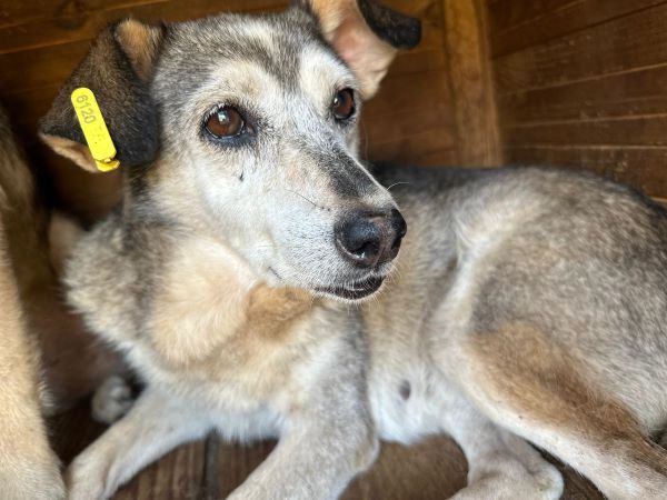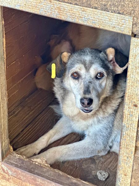 Diese süße Omi Marthe schaute sich unser Tun im Kennel neugierig an. Von alleine kam sie nicht zu uns. In der Hütte konnten wir Marthe überall unter Bedrängung gut anfassen, aber es verunsicherte sie noch. Dennoch sind wir uns sicher, das sie bei den richtigen Menschen in wenigen Tagen auftauen würde, weil man sie gut händeln kann. Sie ist sehr verträglich. Hoffentlich findet diese Omi bald einen schönen Seniorenplatz.