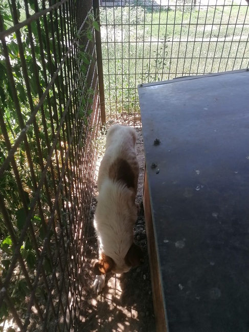 Immer wieder hat sich in den letzten Jahren sein Rudel geändert, da immer wieder Hunde ausreisen durften oder verstorben sind. Im derzeitigen Rudel scheint MATTEO vermutlich zum Opfer geworden zu sein, er ist der Schwächste, und als wenn sein kleines einsames Leben hinter der Hütte nicht schlimm genug wäre, wird er wohl derzeit nicht mehr gut ans Futter gelassen. Er ist viel zu dünn, vielleicht kommt er nur noch nachts vor und versucht die Reste abzubekommen.