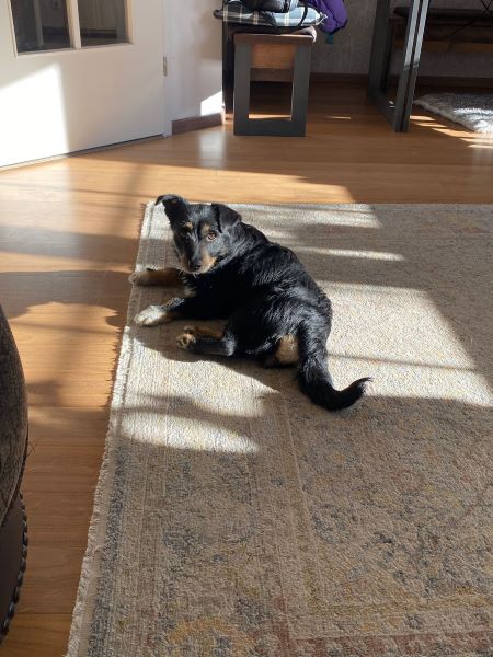 Sie begleitet ihr Pflegefrauchen überallhin, geht mit in den Reitstall, zu Besuch bei Freunden oder auch ins Büro. Gibt man ihr klare Leitlinien bezüglich angemessenen Verhaltens ist mit Matu im Alltag fast alles möglich.