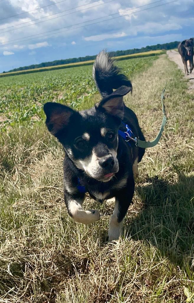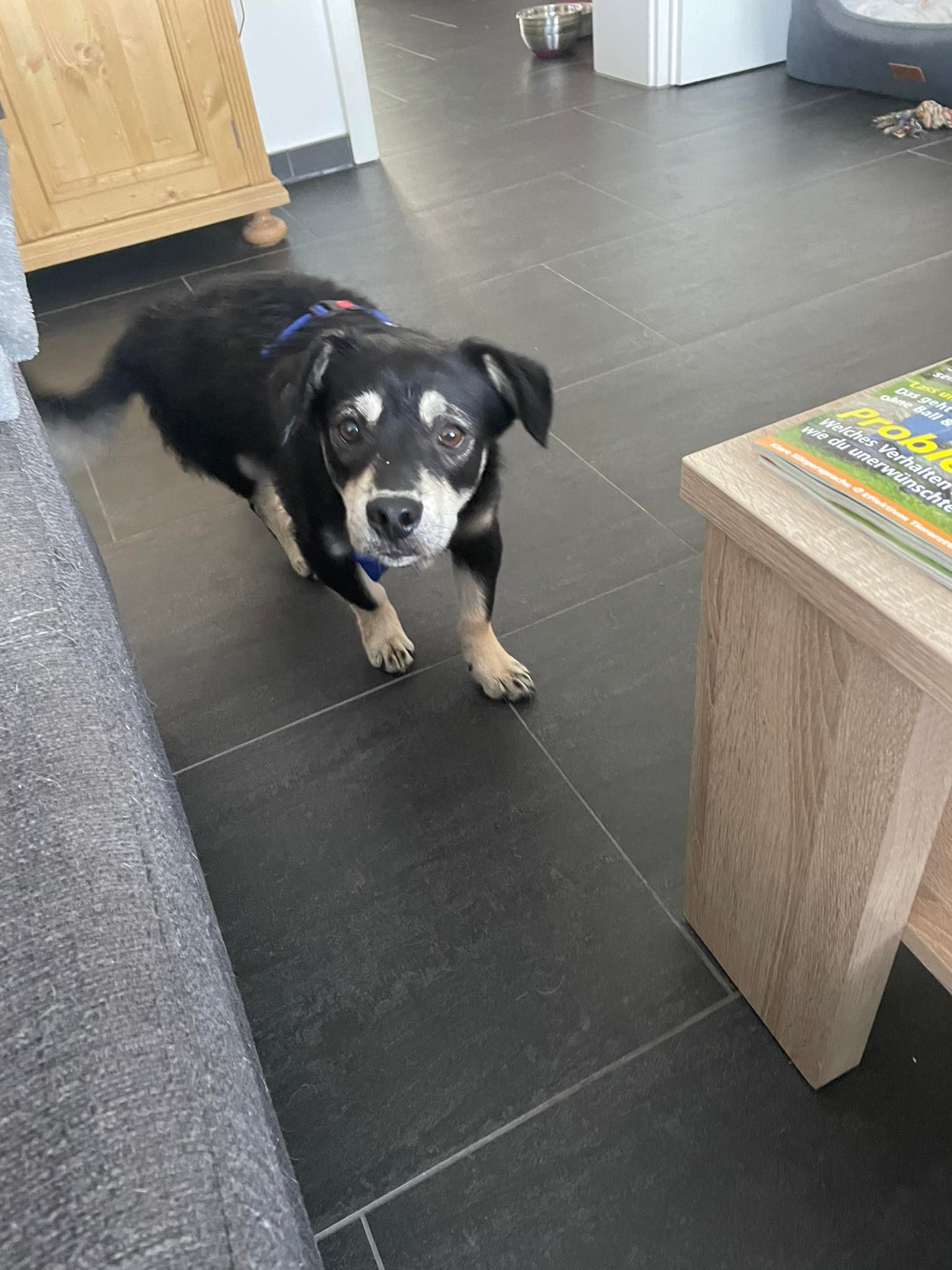 Hier zeige ich mich, als ein sehr nettes Hundekind, ich gehe super gerne spazieren, fahre prima im Auto mit und laufe Treppen, wie ein Profi. Ich lebe hier im gemischten Rudel, auch eine Katze lebt hier, die finde ich spannend, aber ich tue ihr nichts. Meine Pflegemami nennt mich immer kleiner Lumpi, weil ich wohl so ein süßes Gesicht habe.
