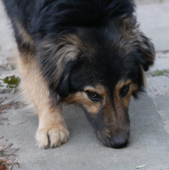 Spaziergänge mit Pflegefrauchen am Ende der Leine sind für ihn entspannt und er geht wie eine Eins durch den Sachsenwald. Wenn aber sein Pflegefrauchen nicht bei ihm ist und eine andere Person mit ihm ein kleines Stück außer Sichtweite von seinem Rudel spazieren geht, dann ist er sehr verunsichert; weint und möchte nicht weiter gehen. Daran arbeiten wir jetzt fleißig.