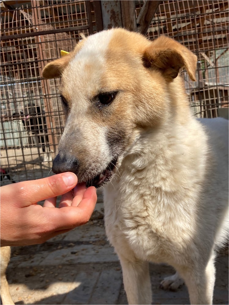 MAYTAY kommt in seinem Kennel gut zurecht, er ist kein Mobbingopfer mehr und auch nicht zu dünn. Er war sofort bei uns und ließ sich problemlos streicheln. Insgesamt war er freundlich, völlig unauffällig und suchte Kontakt zu uns.