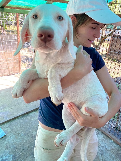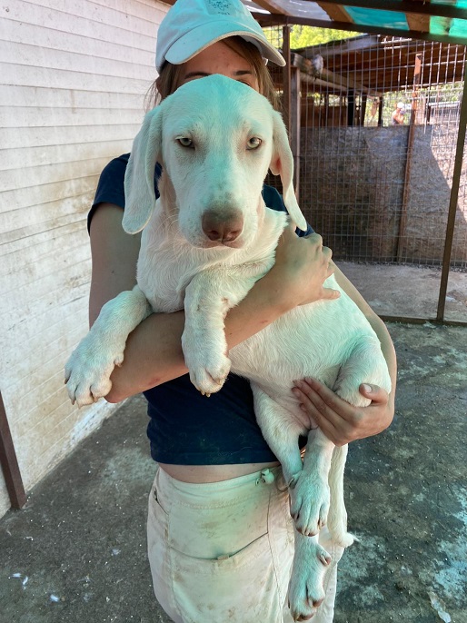 Die hübsche MEA ist die Mutigste aus ihrem Wurf. Nach anfänglicher Zurückhaltung taute sie schnell auf und zeigte sich welpentypisch verspielt. Sie nimmt gerne Leckerlies aus der Hand und ist überall anfassbar.