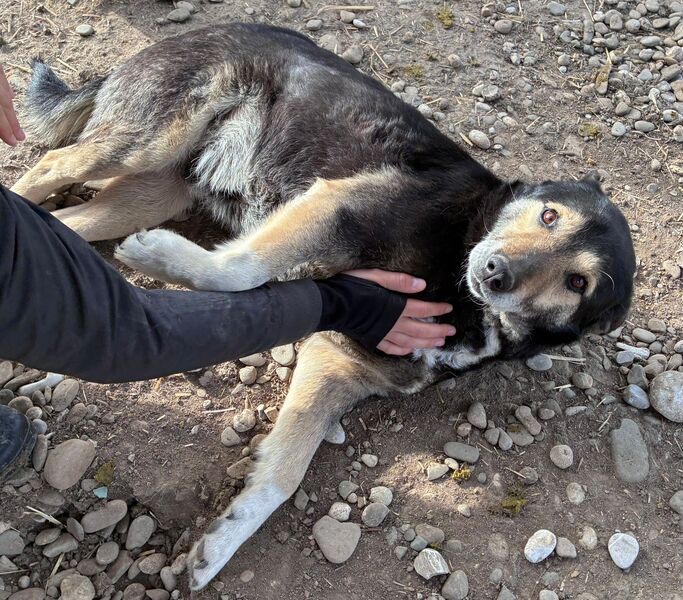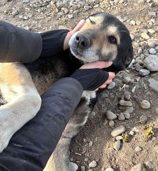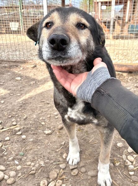 Der zuckersüße MEDO begrüßte uns dieses Mal schon freudig an der Tür, als hätte er auf uns gewartet. Der charmante, ältere Rüde zeigte sich erneut von seiner absolut menschenbezogenen und sanften Seite. Kaum waren wir im Kennel, war er sofort bei uns – immer in unserer Nähe, ohne dabei aufdringlich zu sein. MEDO legte sich vertrauensvoll auf den Rücken und präsentierte uns rührend sein Bäuchlein, welches er sich sichtlich genussvoll streicheln ließ. Die Zuwendung und Nähe schienen ihm unheimlich gut zu tun – man spürt deutlich, wie sehr er sich nach einer Familie und Dazugehörigkeit sehnt. MEDO würde sich so freuen, endlich ein ruhiges Zuhause zu finden, in dem er behütet alt werden darf, geliebt wird und im Idealfall nichts mehr teilen muss. Wir wünschen dem lieben Hundemann, dass er nach all der verlorenen Zeit nun endlich gesehen wird.
