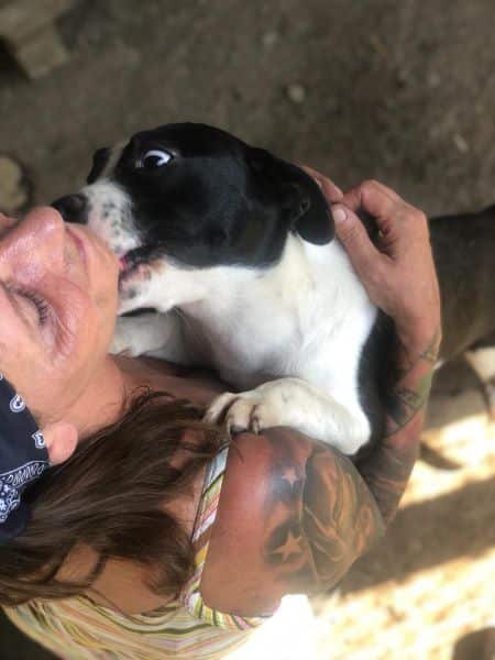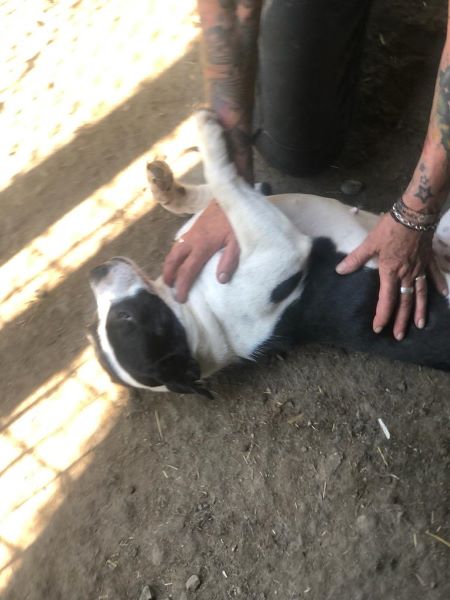 Eine kleine Hündin zum Knutschen. Ausgesprochen Menschenbezogen, witzig und einfach nur richtig süß. Sie freute sich mega über unseren Besuch und ließ sich sofort den Bauch kraulen. Obwohl sie erst ca. 2 Jahre alt ist, hatte sie bereits Welpen gehabt. Jetzt ist sie kastriert. Sie lebt mit einer anderen Hündin zusammen und dürfte daher verträglich sein. Eine tolle, kleine, vsl. Bulldoggenmischlingshündin.
