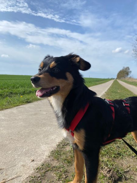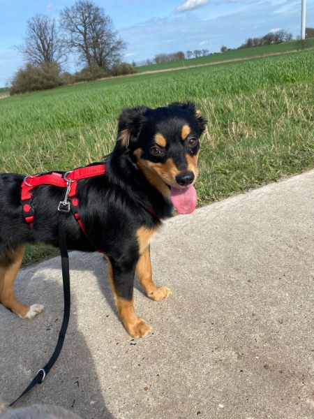 Wesen & Zutraulichkeit (Character & Trustworthiness) | lebhaft (lively), welpentypisch (typical for puppies), verspielt (playful), offen (open), freundlich (friendly), neugierig (curious), sehr menschenbezogen (very people-related), gerne anfassbar (likes to be touched), überall anfassbar (touchable everywhere), anfassbar (touchable), nimmt Leckerchen (takes goodies), zutraulich (trustful), benötigt Eingewöhnungszeit (takes time to settle in), benötigt feste Bezugsperson (needs a permanent reference person) |