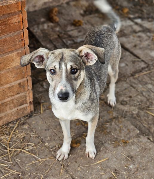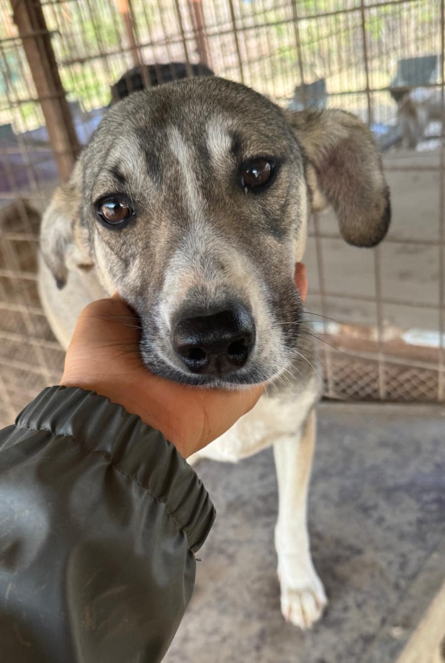 MELLI ist eine liebe Hündin, die sich auch von uns streicheln ließ. Sie war erst zurückhaltend, was sicher auch an einem sehr präsenten Rüden in ihrem Kennel liegt, in dessen Nähe sie sich nicht traute. Als wir uns ihr widmeten, nahm sie gerne unsere Leckerlies aus der Hand und ließ sich auch gut anfassen und streicheln. MELLI fühlte sich dabei noch unwohl und wir vermuten, dass sie den Kontakt mit Menschen einfach noch nicht so kennt. In einem eigenen Zuhause würde die süße MELLI wahrscheinlich gut auftauen.