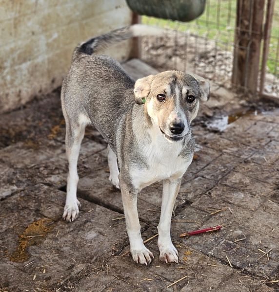 Diese Hündin hat es in ihrem Kennel nicht leicht, da ein größerer Rüde den gesamten Kennel dominiert. Sie beobachtete uns sehr neugierig und interessiert und war in unserer Nähe. Anfassen konnten wir sie nicht. Dafür fehlte ihr der Mut und sie wich uns aus. Bei verständnisvollen Menschen, die mit ihr zusammen Vertrauen aufbauen, könnte sie noch gut auftauen. Ein Ersthund würde ihr die Eingewöhnungszeit sicher erleichtern.