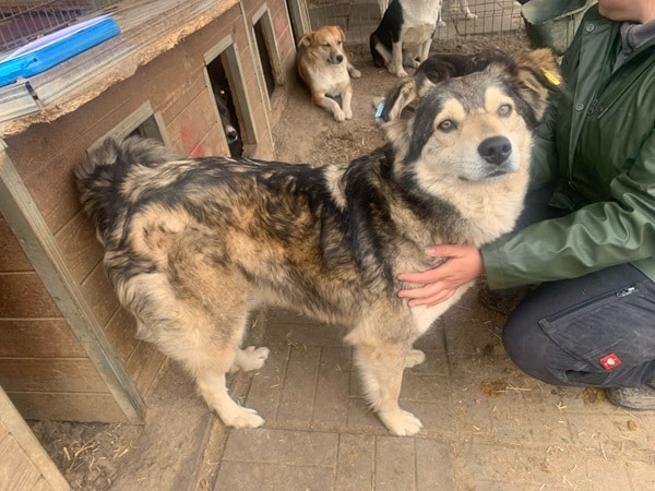 MELLIN ist ein freundlicher und menschenbezogener Rüde, der sich über unseren Besuch sehr gefreut hat. Er genießt es, gestreichelt und angefasst zu werden. MELLIN strahlt eine positive Ausstrahlung aus und ist einfach nur liebenswert. Bei unserem Besuch hat er so viel Freude gezeigt. Das Streicheln stellt für ihn kein Problem dar, und er ist zudem verträglich. Während unseres kurzen Aufenthalts konnten wir keine Spannungen zwischen den Hunden in dem engen Kennel beobachten.