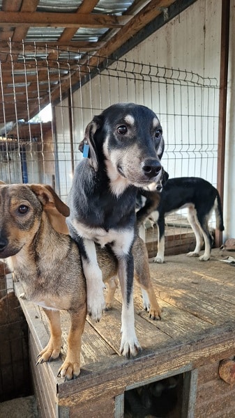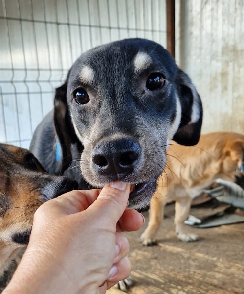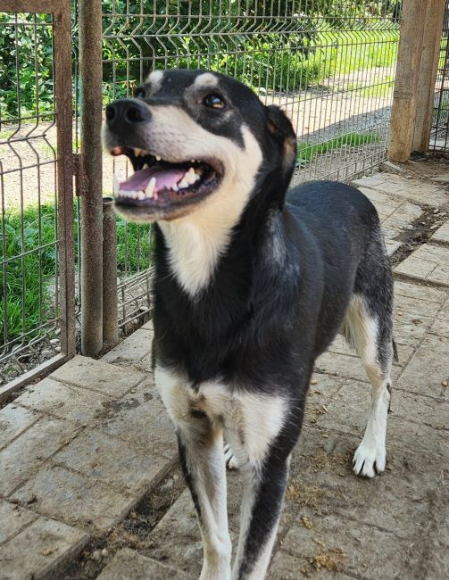 MELODY ist die mutigste und zutraulichste im Kennel. Sie traute sich auf uns zukommen und die angebotenen Leckerchen aus der Hand zu nehmen, wobei wir sie auch vorsichtig am Näschen streicheln durften. Auch sie ist mittlerweile zu einer stolzen Junghündin herangewachsen, die trotz des harten Shelteralltags Lebensfreude ausstrahlt.