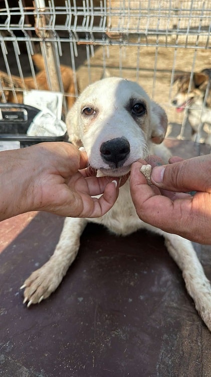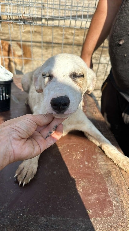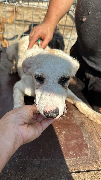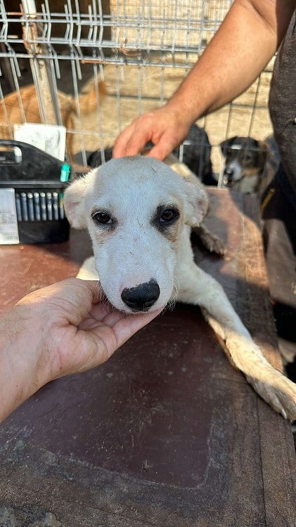 Die hübsche MELVA zeigt sich leicht schüchtern. Wir konnten sie dennoch gut anfassen und auf den Arm nehmen. MELVA ist total verspielt und möchte am liebsten alles neugierig erkunden. Leider hat das Hundekind im Shelter keine Möglichkeiten dazu. Sie sitzt in einem überfüllten Bereich mit vielen anderen Welpen, die alle auf eine zweite Chance hoffen.