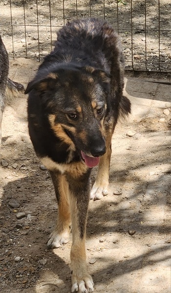 Ein super netter, aufgeweckter Rüde, der gar nicht wusste wo hin mit seiner Freude. Er sprang herum und freute sich über unseren Besuch, kam immer wieder ganz an uns heran und ließ sich an der Schnauze anfassen. In der Hütte konnten wir ihn dann überall streicheln, er kennt es nur eben noch nicht.