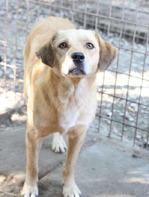 Der helle Labbi-Mix MENOWIN zeigte sich uns gegenüber nervös und ließ sich in der kurzen Zeit, in der wir in seinem Kennel waren, nicht anfassen.