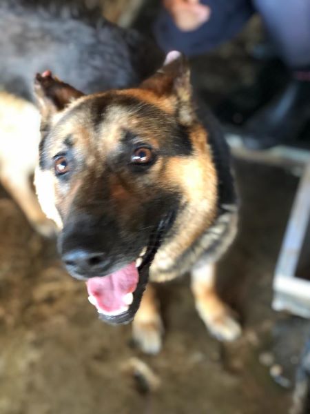 Wunderschöner, sehr netter Schäferhundrüde. So zutraulich wie er ist, wird er bei Menschen gelebt haben und dürfte kein Straßenhund gewesen sein.