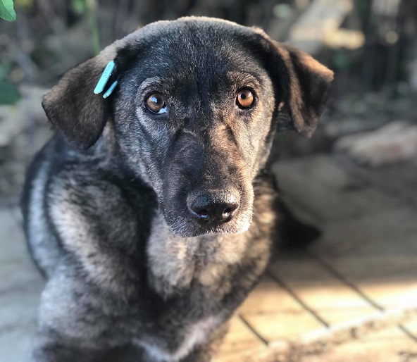 Merla galt eine Zeit lang als vermisst. Nun haben wir sie freilaufend auf dem Gelände wieder entdeckt. Merla beobachtete uns neugierig. Den Leckerchen gegenüber war sie nicht abgeneigt und konnte unsere Nähe zulassen. Nach kurzer Zeit konnten wir sie auch streicheln. Sie ist eine zurückhaltende und ganz bescheidene Hündin.