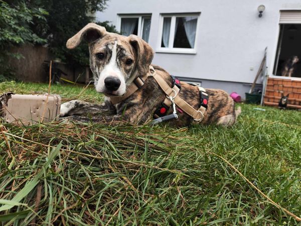 Merle ist eine sehr menschenbezogene und fröhliche Junghündin. Obwohl sie erst eine kurze Zeit bei mir ist, geht sie schon begeistert spazieren. Merle kommt aus Rumänien und begegnet den neuen Eindrücken mit Offenheit. Nicht anders, als wenn wir zum Urlaub in ein anderes Land fahren und uns erst mal orientieren. Keine Spur von Überforderung. Wahrscheinlich ist es auch das Vertrauen in den Menschen das ihr die nötige Sicherheit gibt.