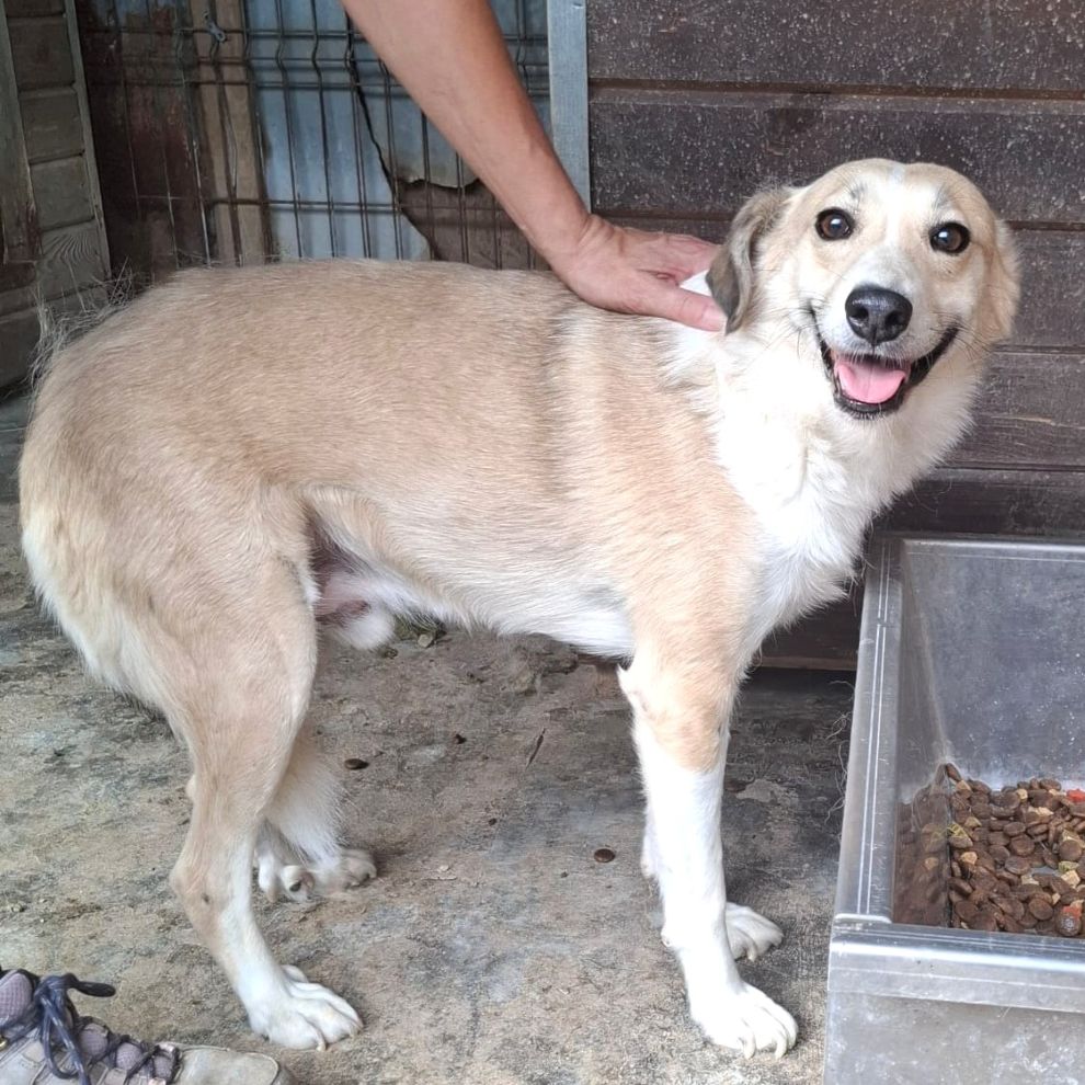 Der süße MERLIN verbringt die meiste Zeit in seiner Hütte und beobachtet lieber das Geschehen aus der Distanz. Nach kurzer Zeit fasste er jedoch Mut, kam heraus und ließ sich gut anfassen. Unsere Leckerchen nahm er gerne an. Man merkt ihm an, dass ihn die Situation im Shelter überfordert und ohne Kontakt zu Menschen, entwickelt er sich unsicher. MERLIN sollte daher möglichst bald ausreisen dürfen.