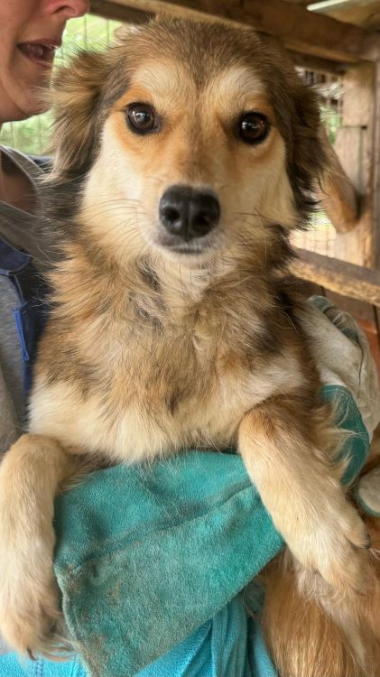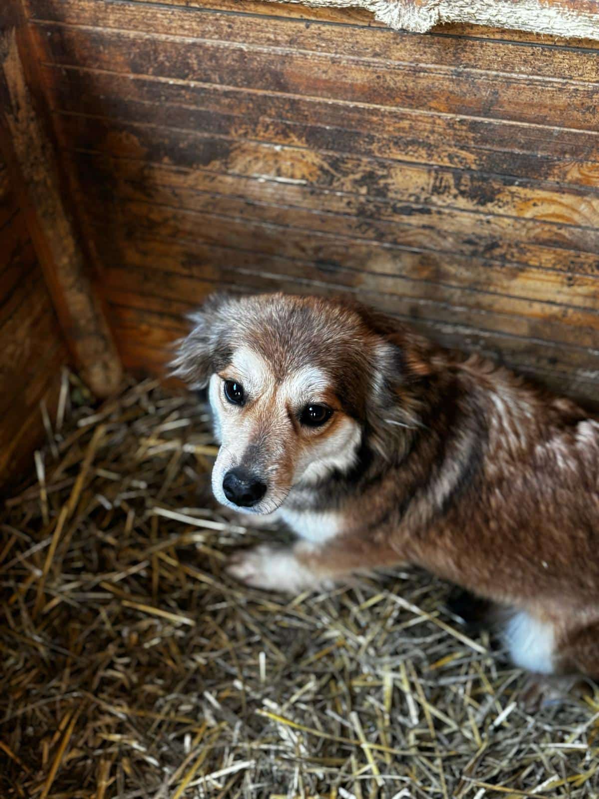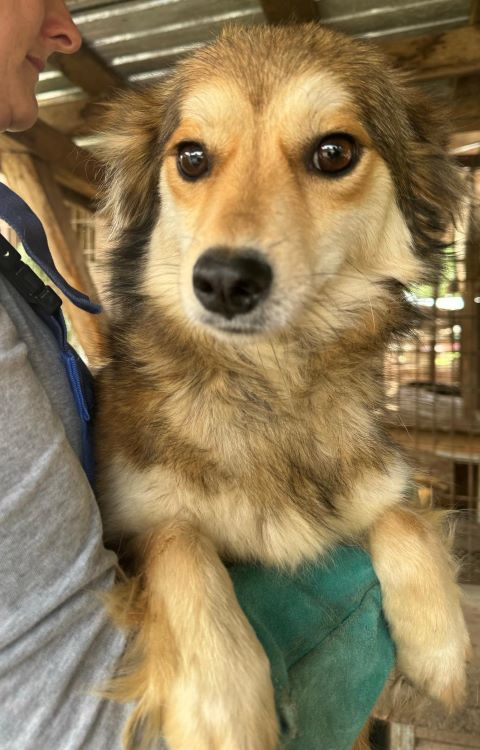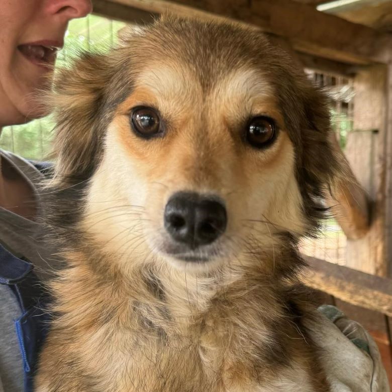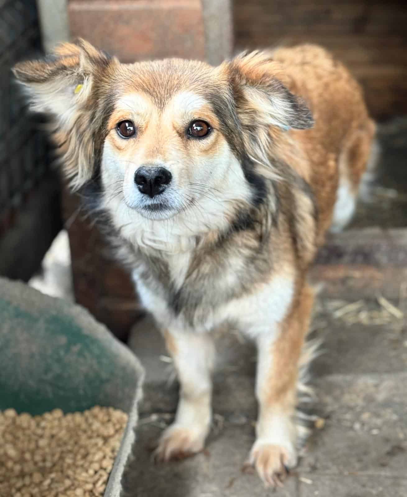 METTE war bei unserem Besuch neu in Bucov (03/2024) und vollkommen überfordert vom Shelterleben. An unseren Leckerchen war sie erstmal nicht interessiert. Als wir ihr diese in die Hütte geworfen haben, hat sie diese aber gefressen. Wir haben uns erst vorsichtig mit der falschen Hand genähert, woraufhin sie ein Mal leicht danach abschnappte. Als sie sich aber beruhigte und merkte, dass ihr nichts passiert, konnten wir sie – auch mit der eigenen Hand – vorsichtig streicheln. Sicherlich würde sie in einer anderen Umgebung bald auftauen können. Panisch war sie nie.