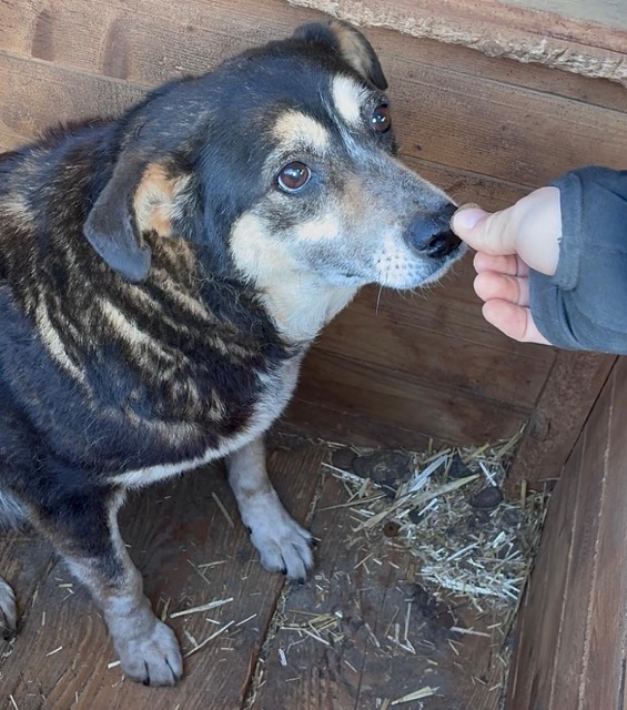 Seit nun mehr als 7 unvorstellbar langen Jahren hält unsere kleine MEYFISS bereits im riesigen Shelter durch und musste dort alt werden. Das stressige Shelterleben hat ihr sichtlich zugesetzt, denn sie sieht einfach nur fix und fertig aus… Als junges Hundemädchen kam sie damals dorthin und harrt seither fast ihr gesamtes Leben lang hinter Gittern aus. Wie zart und gleichzeitig stark dieses Seelchen doch ist… In all den Jahren hatte MEYFISS kaum Kontakt zu uns Menschen und konnte fast keine Erfahrungen sammeln. So ist es kein Wunder, dass sie weiterhin unsicher und skeptisch auf unseren Besuch reagierte. Im offenen Kennel wich MEYFISS uns aus, doch in der sicheren Hütte konnten wir sie behutsam streicheln. Fremd und daher noch sehr ungewohnt ist ihr diese intensive Nähe und so konnte sie die Zuwendung keinesfalls genießen. Vermutlich wäre MEYFISS am liebsten unsichtbar geworden, zeigte jedoch keinerlei Abwehrverhalten und ließ es tapfer über sich ergehen. Wir hoffen, dass die sensible Hundedame nach all der verlorenen Zeit nun wenigstens ihre zweite Lebenshälfte auf der Sonnenseite und in Geborgenheit verbringen darf. Bei erfahrenen und einfühlsamen Menschen sowie mit der Unterstützung eines netten Ersthundes wird die verträgliche Maus sicher mit der Zeit Fortschritte machen und Vertrauen lernen können. Wir wünschen ihr diese Chance so sehr.