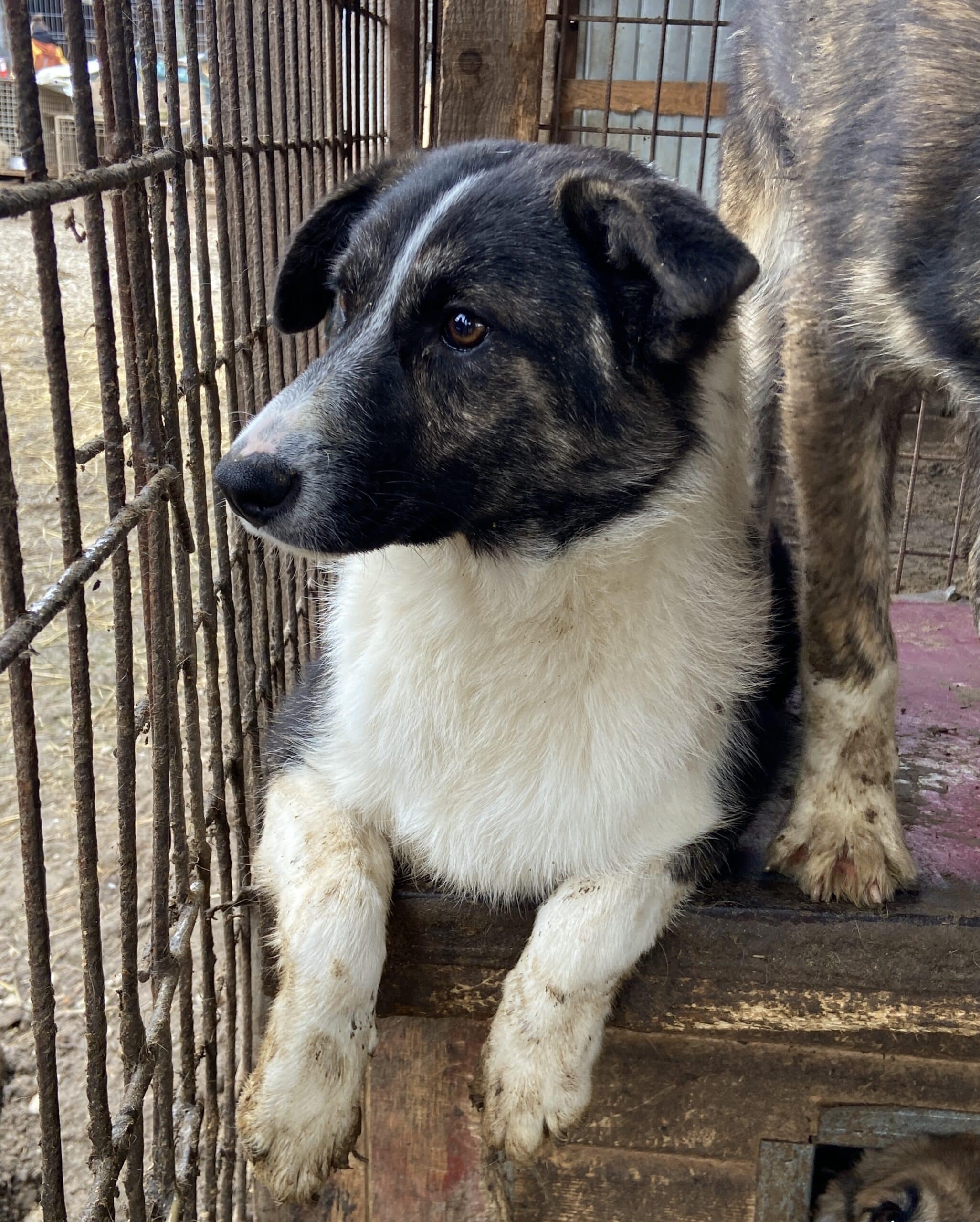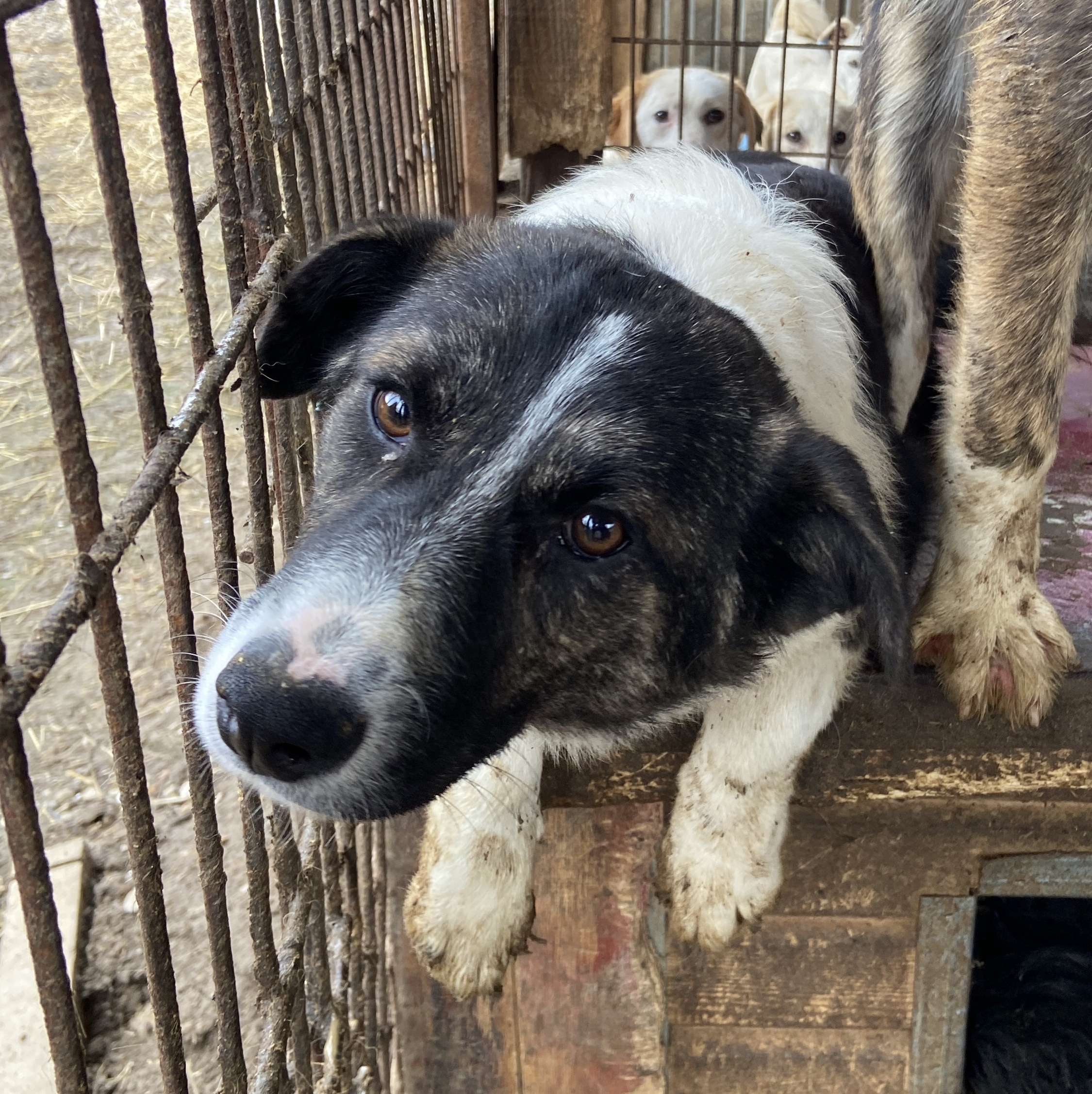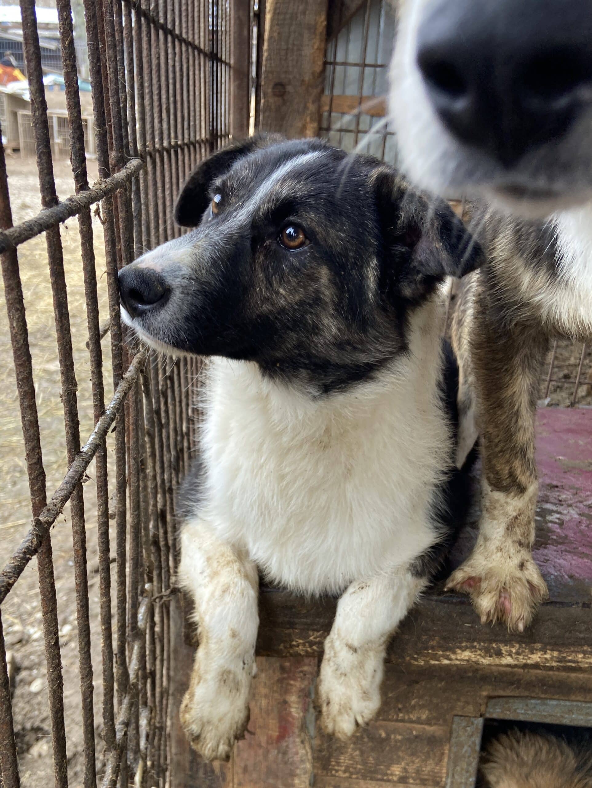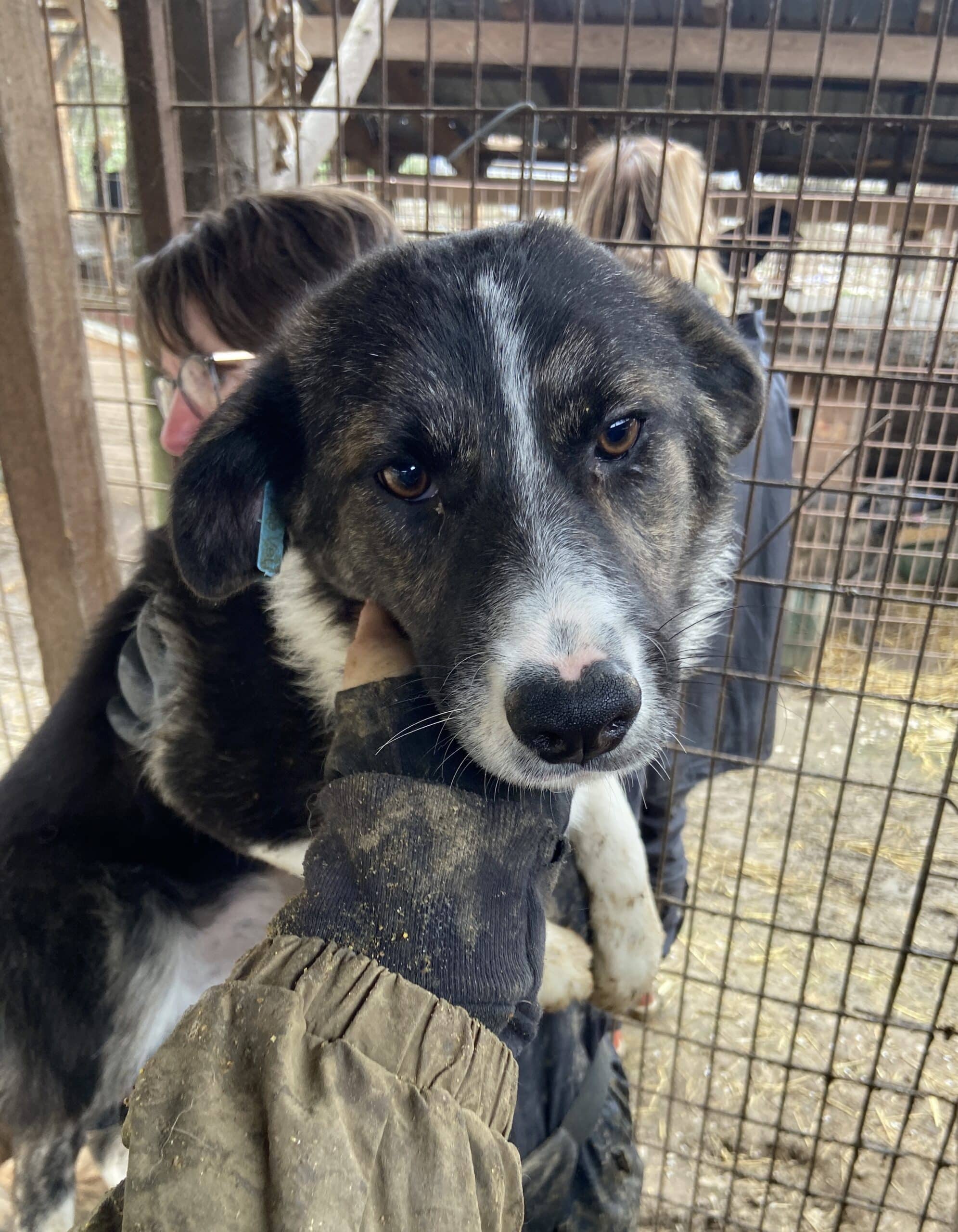 Die zuckersüße MIA mit der Herznase hielt sich während unseres Besuches fast ausschließlich auf der Hütte auf, von wo aus sie einen super Überblick über den Kennel hat und alles zuerst mitbekommt. Neugierig, freundlich und offen reagierte sie auf uns, nahm gerne unsere Leckerlie und ließ sich problemlos überall streicheln und auch hochnehmen. Mit ihren Kennelgenossen ist sie verträglich.
