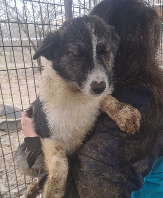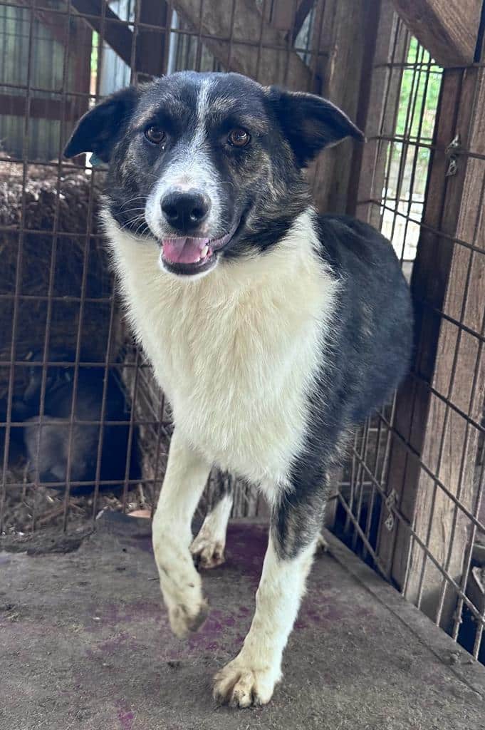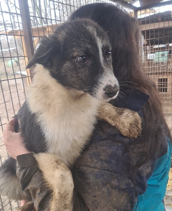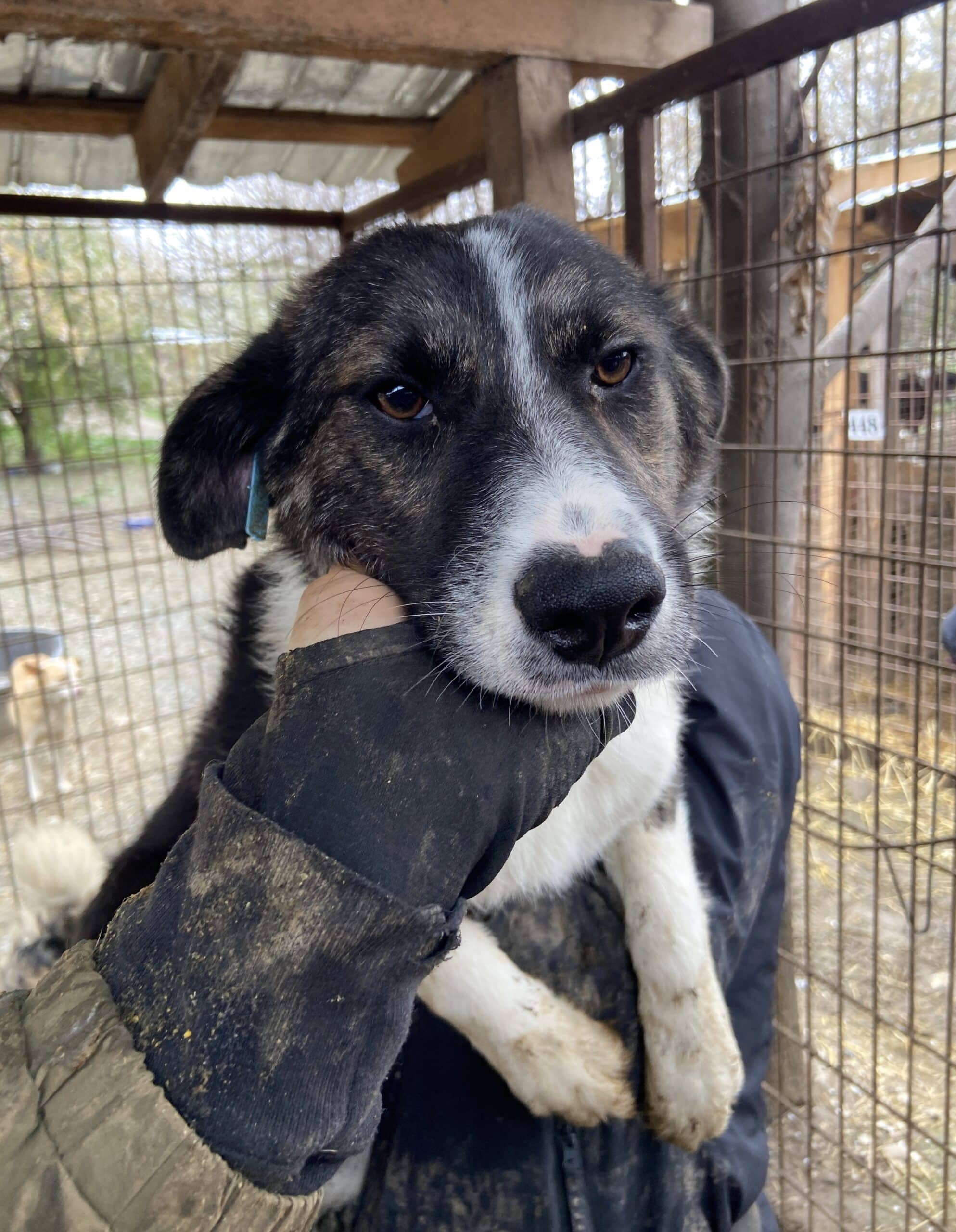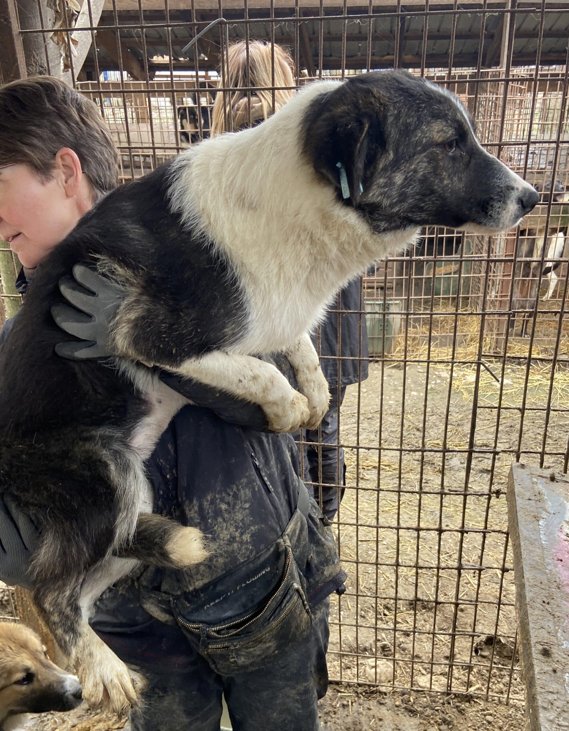 Die zuckersüße MIA mit der Herznase hielt sich während unseres Besuches fast ausschließlich auf der Hütte auf, von wo aus sie einen super Überblick über den Kennel hat und alles zuerst mitbekommt. Neugierig, freundlich und offen reagierte sie auf uns, nahm gerne unsere Leckerlie und ließ sich problemlos überall streicheln und auch hochnehmen. Mit ihren Kennelgenossen ist sie verträglich.
