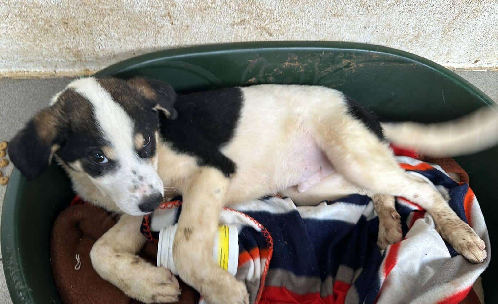 Der kleine Hundemann hatte Anfangs mit Calciummangel zu kämpfen. Dadurch waren seine Beinchen weicher und er hatte Probleme beim Laufen. Unsere Tierärztin hat sich rührend um ihn gekümmert. Es geht ihm viel besser. Michael spielt mit den anderen Welpen, seine Beinchen sind stark und standfest.