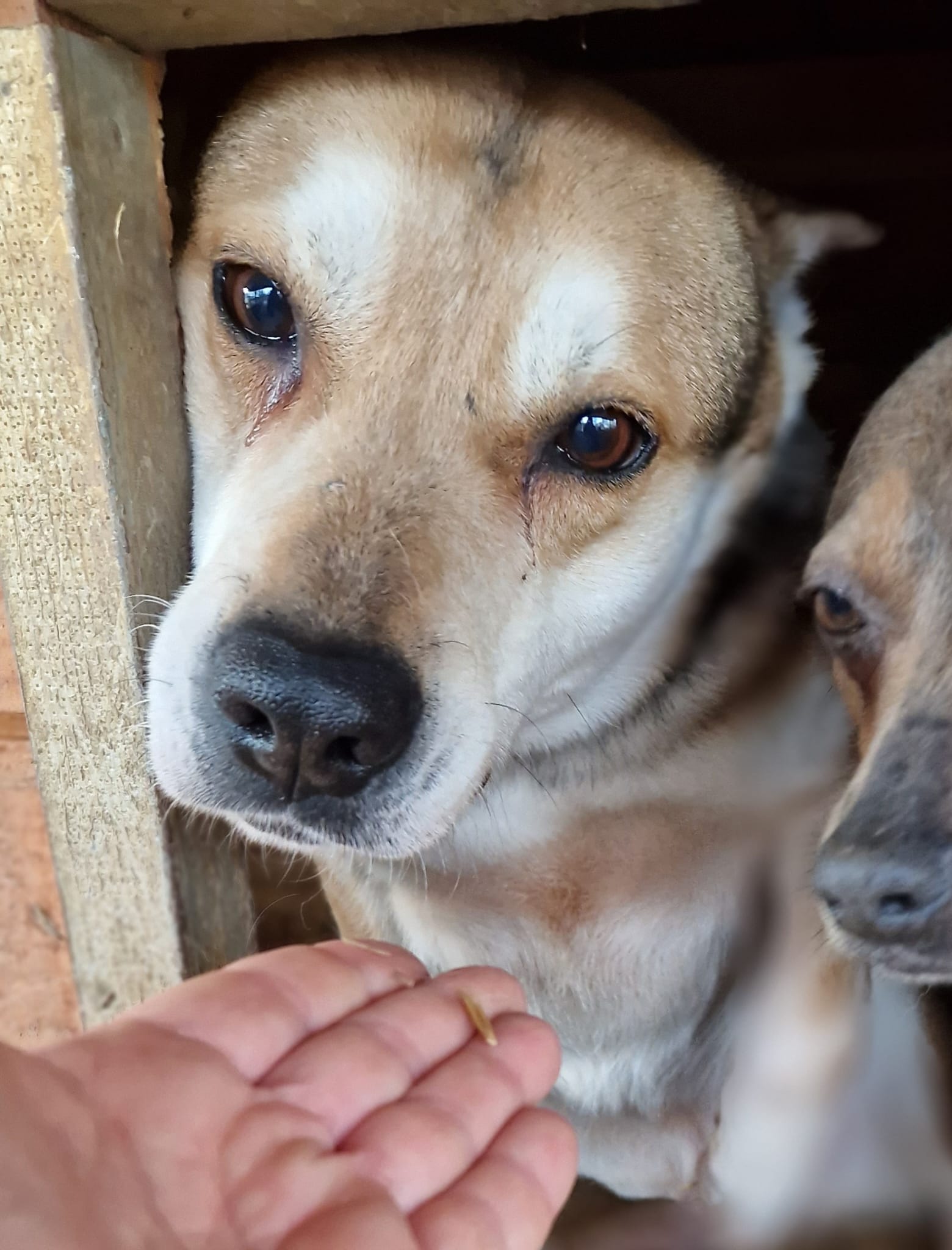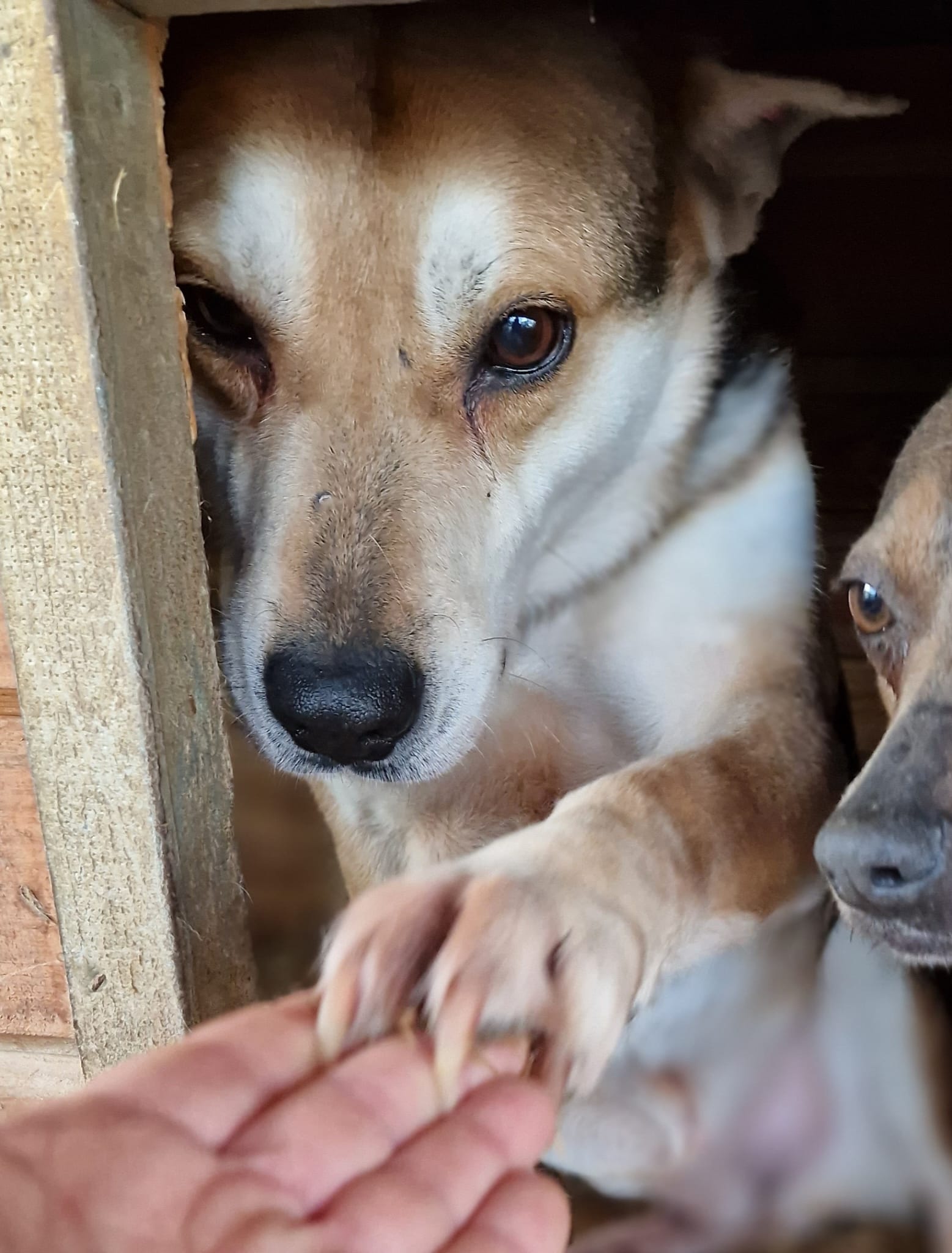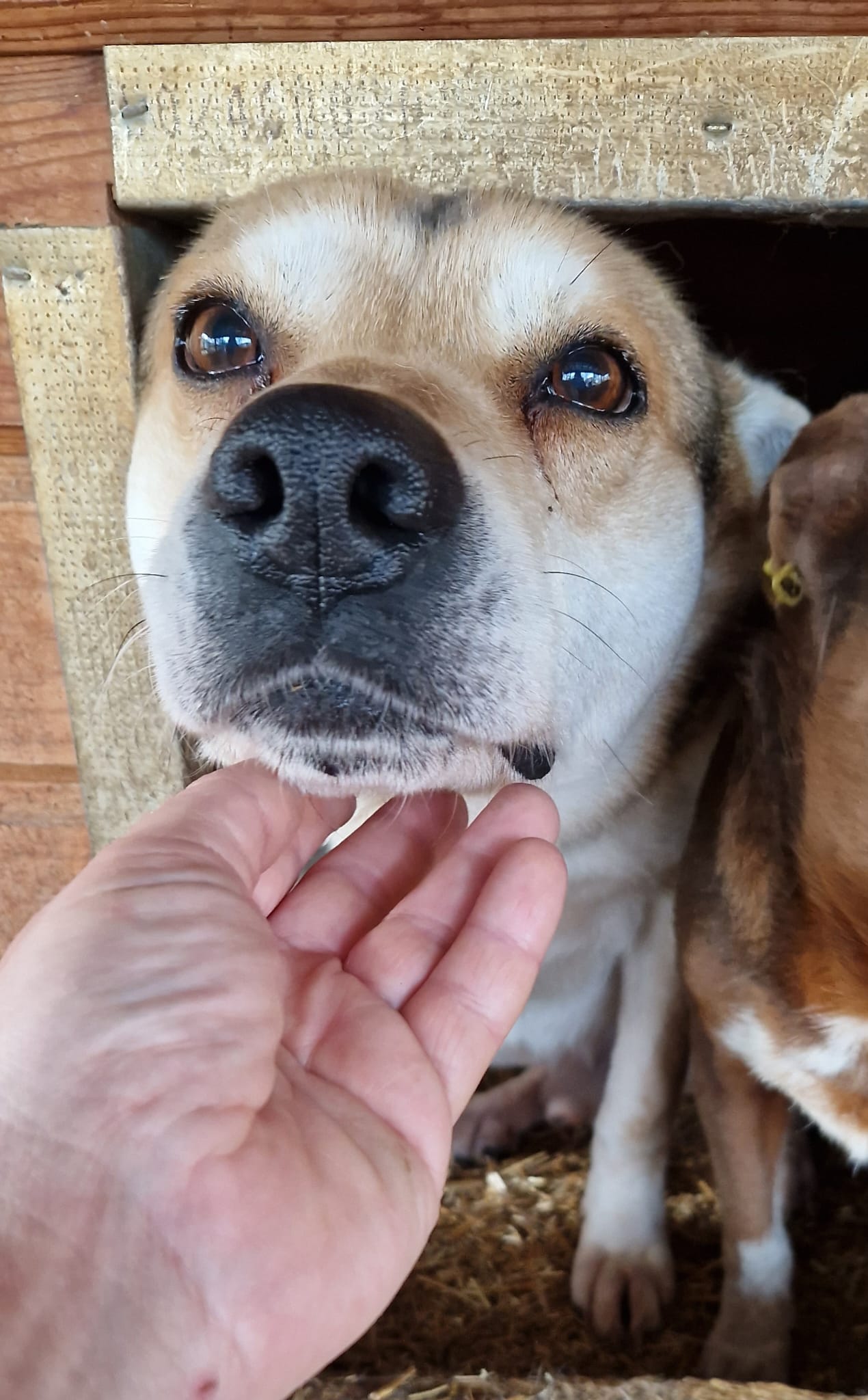 MICKY ist ein sehr rührender Rüde, der etwas schüchtern ist, aber neugierig in einer Hütte saß und sich nicht heraus traute. Als wir uns zu ihm runter beugten, wirkte er sichtlich erleichtert, dass wir etwas Zeit für ihn hatten. MICKY lässt sich streicheln und pfötelte immer wieder nach etwas Aufmerksamkeit.