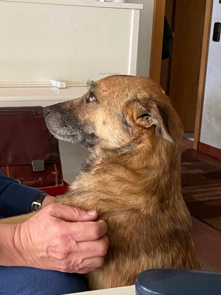 Gestatten, mein Name ist Micky. Als ich im Januar 2024 zu meinen Pflegeeltern kam, war ich so dünn und schwach, dass sie mich vom Auto ins Haus tragen mussten. Ich konnte mich die ersten Tage kaum auf den Beinen halten. Außerdem war ich furchtbar schüchtern und ängstlich, weil ich nicht wusste, was mich da erwartet. Meine Pflegeeltern, die neben einem Rudel von drei eigenen großen Hunden schon einen Pflegehund betreuten, hatten mich zum Glück auf der Homepage von ProDogRomania e.V. gesehen und waren so gerührt, dass sie sich sogar noch einen fünften Hund in die Familie holten.