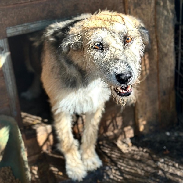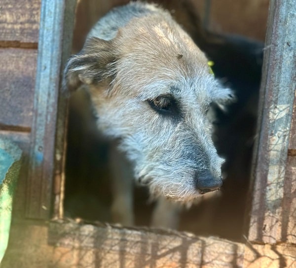 Sie kam raus und im Video habe ich gesagt, dass sie nun versucht zu fliehen. Das war voreilig, denn im Video sieht man gut, dass sie lediglich einen Platz zum erleichtern suchte – natürlich weit weg von der Hütte. Wie schrecklich muss das als reinlicher Hund sein, nur 1m von seinem Schlafplatz gehen zu können, um sich zu leeren. Es sind so viele Dinge, die so ein Shelterleben für die Hunde zur Qual werden lässt. Und dennoch war diese Hündin von der ersten Minute an, nur nett.