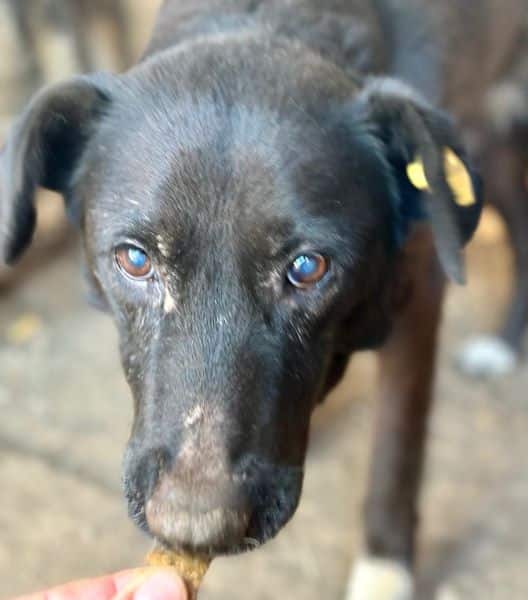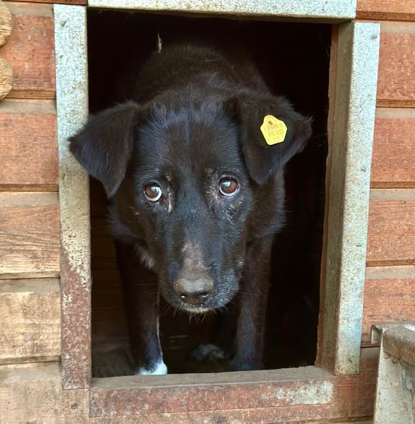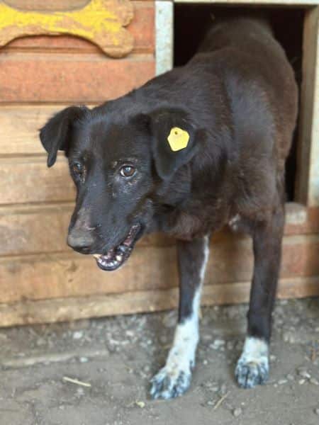 Midnight blieb erstmal etwas auf Abstand und wäre gerne geflüchtet. Unsere Leckerchen überzeugten sie dann doch immer wieder, das kurz zu uns zu kommen, lohnender ist als zu flüchten. Midnight lebt bereits viele Jahre im Shelter. Es würde schwer werden, sie noch an ein Familienleben zu gewöhnen. Was eher ginge ein Ort, an dem sie selbstständig zwischen raus und rein wechseln könnte. Hundegesellschaft sollte dabei nicht fehlen. Wie Midnight unter Bedrängung reagiert, wissen wir nicht.