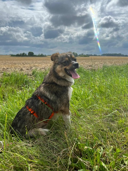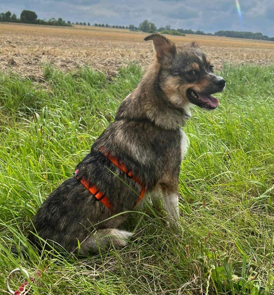 Unsere Mieke war schon bei ihrer Ankunft hier sehr offen und neugierig. Alles ist aufregend und sie genießt es sehr, in ihrem neuen Leben angekommen zu sein. Mieke ist sehr quirlig und agil, aber mit freundlichem Gemüt dabei. Spazieren gehen, geduscht werden oder die neuen Abläufe kennenlernen, alles nimmt sie mit Leichtigkeit und Neugier. Es macht viel Spaß mit ihr unterwegs zu sein, denn sie liebt menschliche Nähe und Aufmerksamkeit und Essen. Dabei kann Mieke aktiv und wuselig sein aber auch ganz gemütlich und innig. Sie findet es toll, wenn man sich mit ihr auf die Wiese legt und einfach nur genießt. Im Moment ist sie noch ziemlich reizüberflutet und springt von A nach B aber sie lässt sich gut runter fahren und führen, sodass man dann entspannt spazieren gehen kann.
