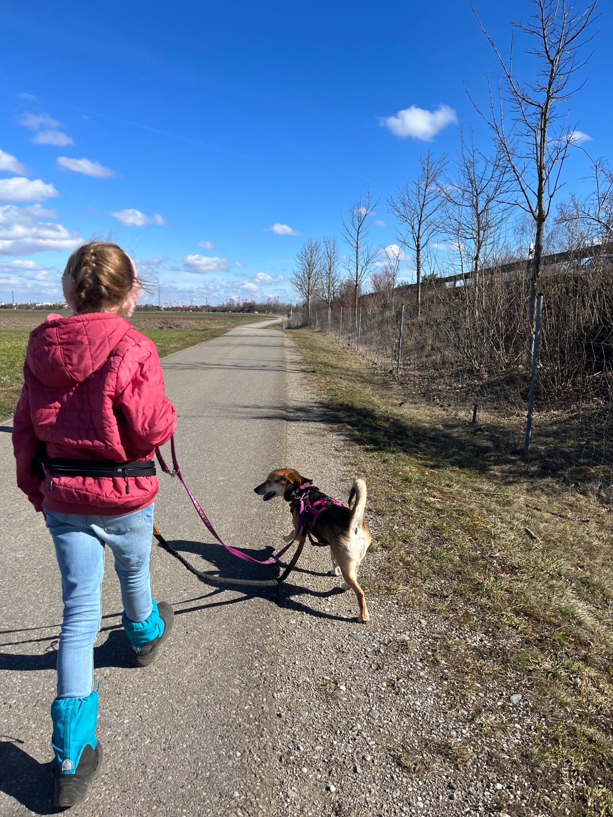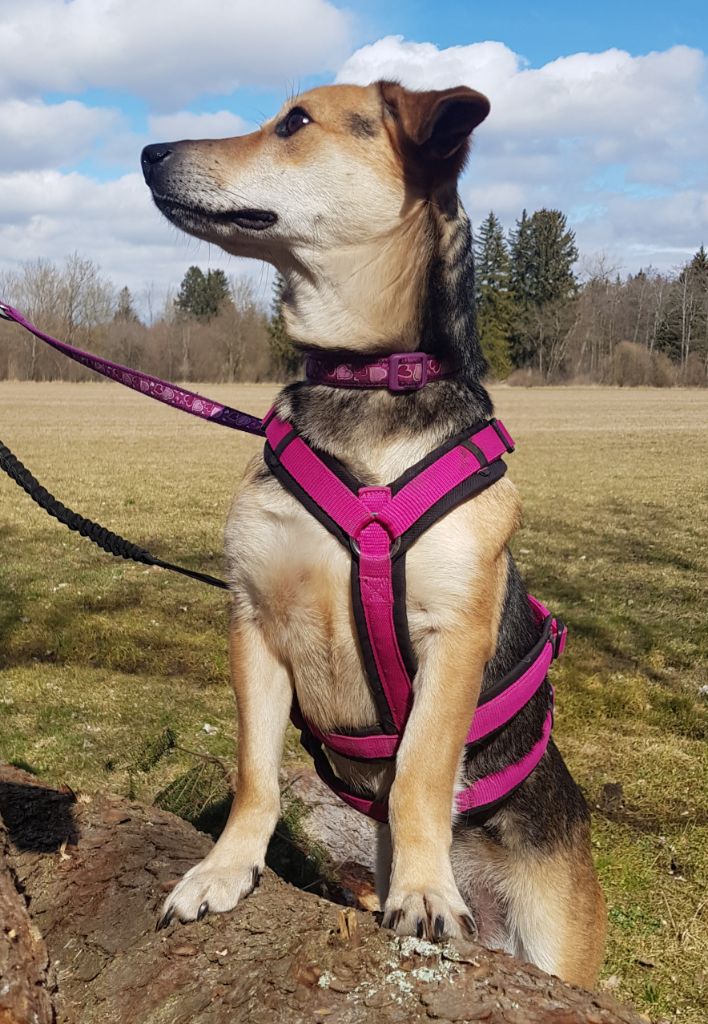 Sie freundete sich gleich mit den Kindern an und war von Anfang an sicher stubenrein. Sie geht gerne Gassi, auch längere Runden bereiten ihr große Freude. Sie läuft schon gut an der Leine und ist draußen sehr entspannt und nicht schreckhaft. Hundebegegnungen sind für sie kein Problem, sie ist dabei eher zurückhaltend, aber freundlich.