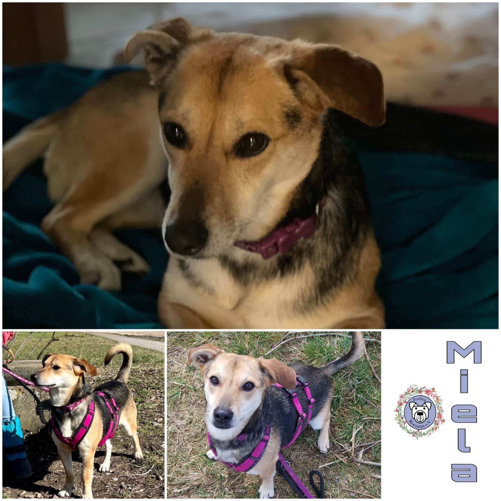 Wer sich in die bildhübsche Miela, die wir gerne spaßeshalber (rein bildlich gesprochen) als Mischung eines Schäferhundes im Handtaschenformat und eines Langbeindackels beschreiben, verliebt hat und sich vorstellen kann, ihr ein dauerhaftes und liebevolles Zuhause geben zu können, der kann sich gerne bei psb@prodogromania.de melden.