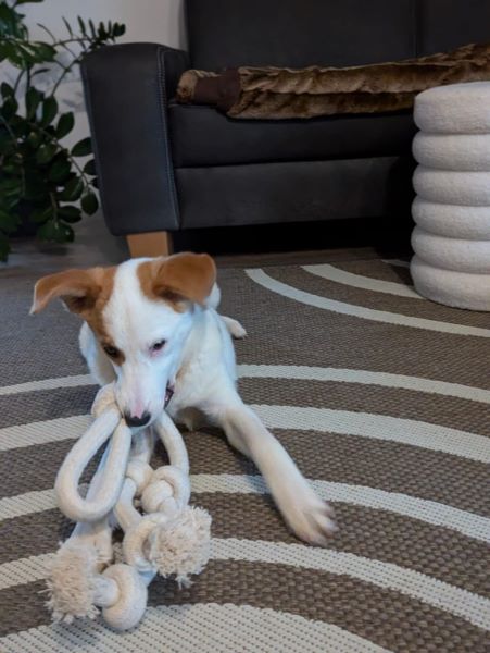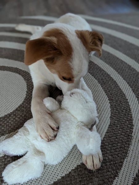 MIELO liebt Suchspiele und ist für einen jungen Hund schon ziemlich ausdauernd und konzentriert. Er schläft durch und ist stubenrein. Kurze Zeit (ca 10 Minuten) kann er schon alleine bleiben, das muss aber noch geübt werden