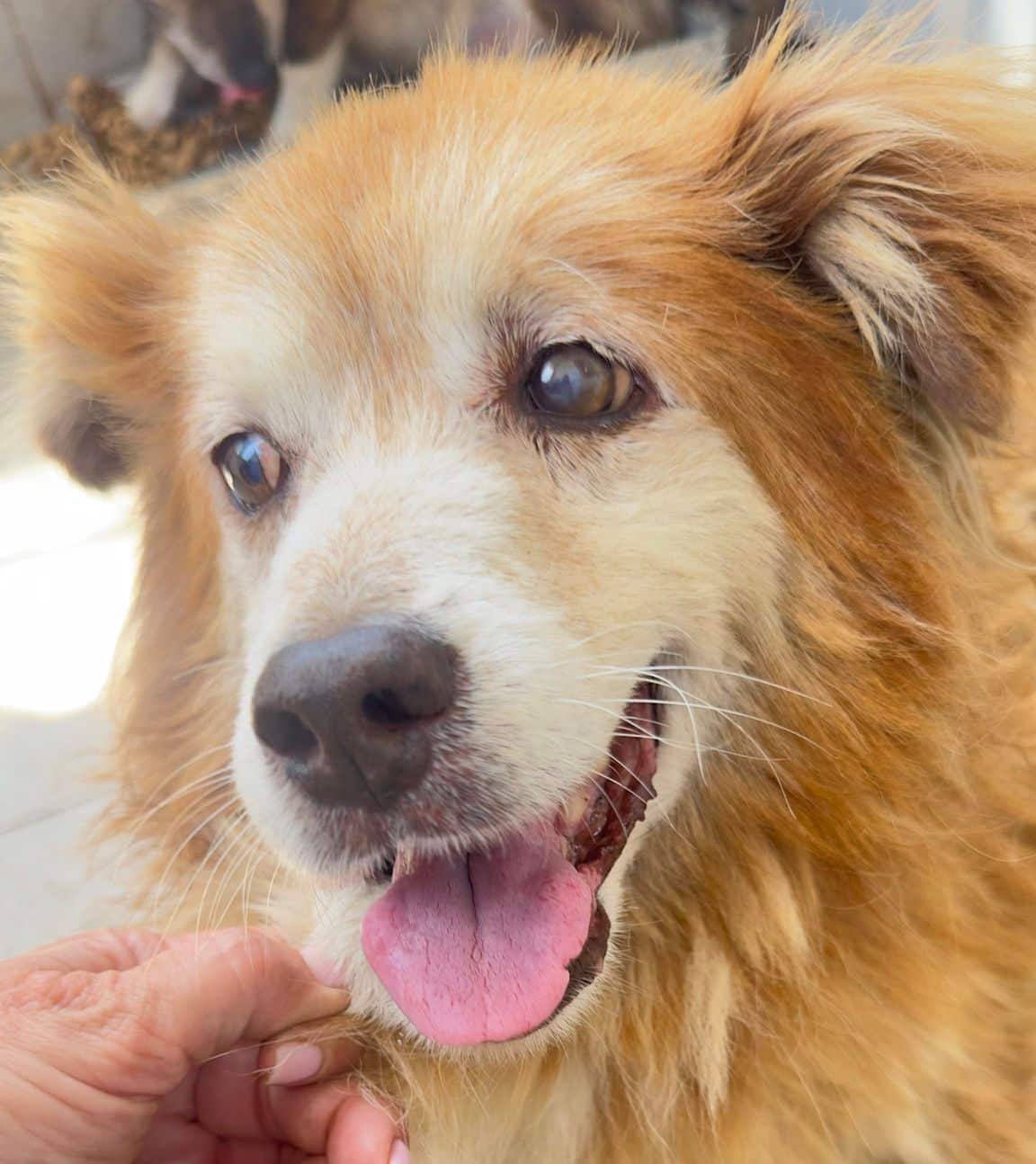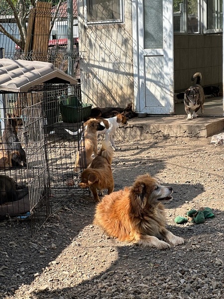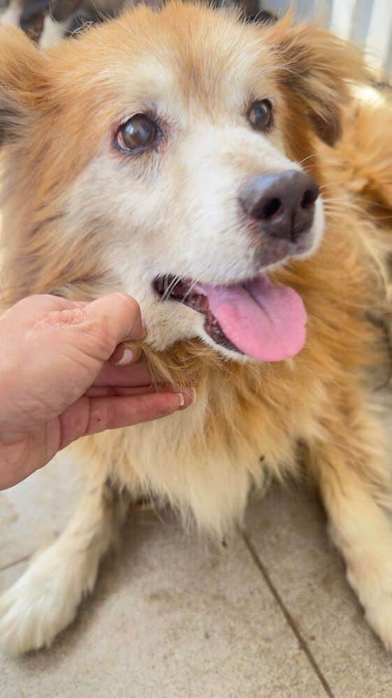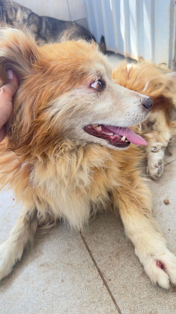 Ganz lieber gemütlicher Senior. Er lässt sich von den Hunden nicht aus der Ruhe bringen. Eine Volontärin hat mit einem Wischmob um ihn rumgewischt und er ist entspannt liegen geblieben.