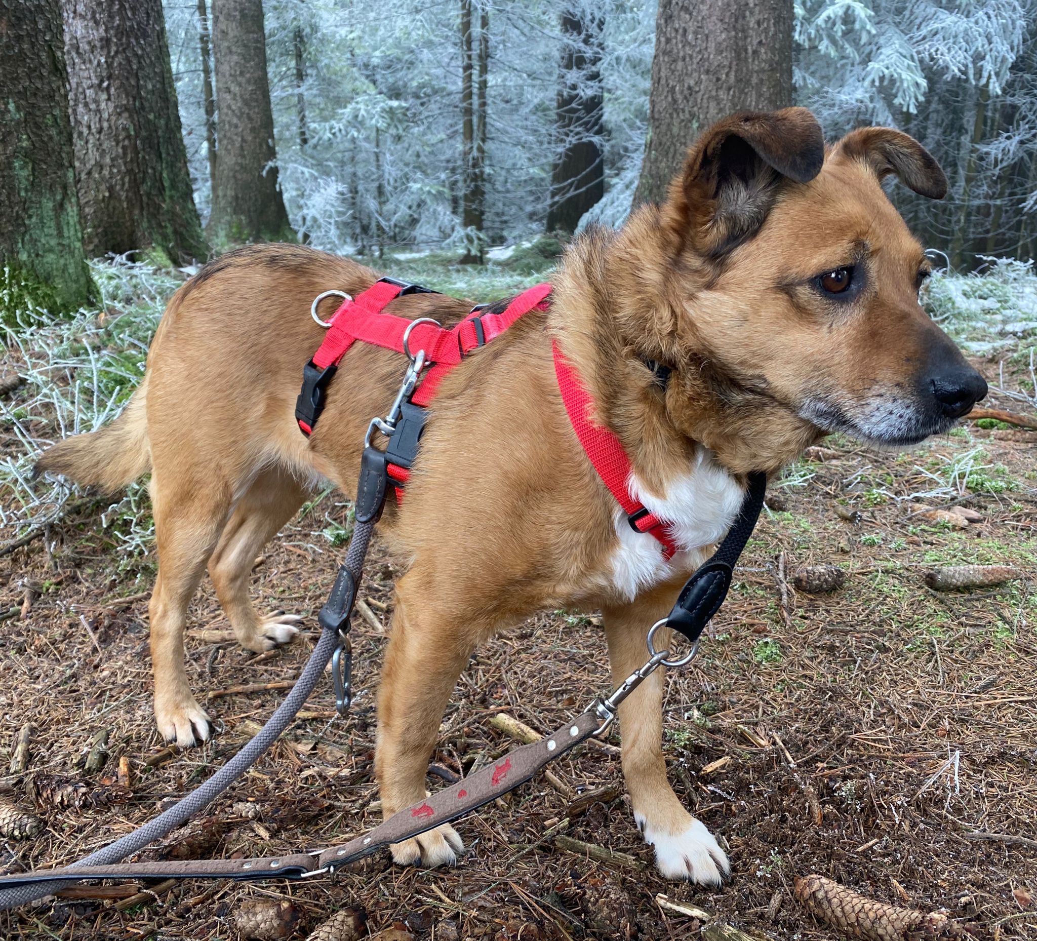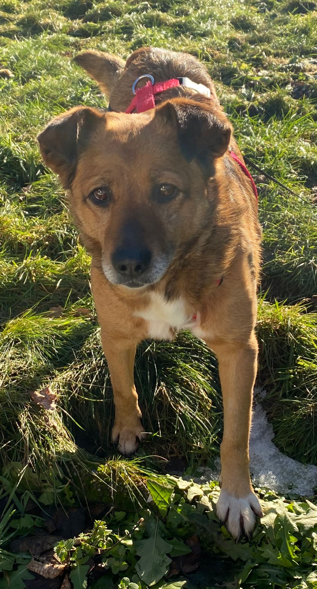 Miley wäre die ideale Zweithündin, sie schaut gerne was andere Hunde machen und traut sich dann das nachzumachen. Auch beim Gassigehen gibt ihr momentan ein souveräner Ersthund Sicherheit.