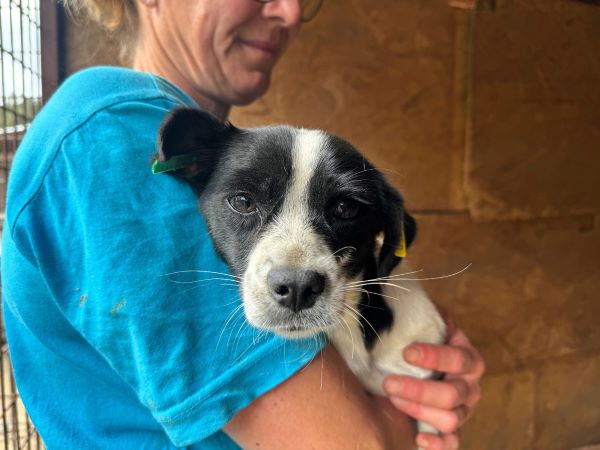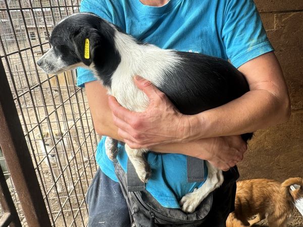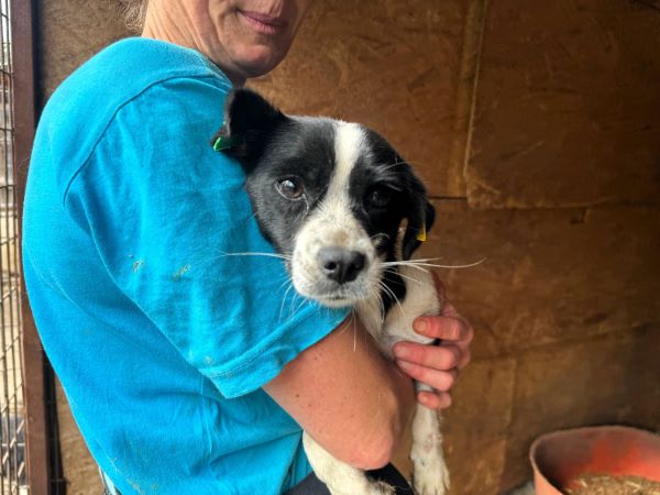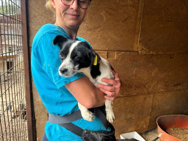 Dieses kleine Mäuschen sitzt mit sehr vielen Welpen zusammen. Sie ist super nett und wurde nun in den Welpen Kennel gesetzt, da sie im alten Kennel nicht zurecht kam, sie wurde immer wieder angegriffen von anderen dort sitzenden Hunden. Sie ist absolut fertig, weil es in dem Welpen Gewusel keinen ruhigen Platz für sie gibt. Sie war froh über den kurzen Moment auf dem Arm. Sie muss dringend da raus.