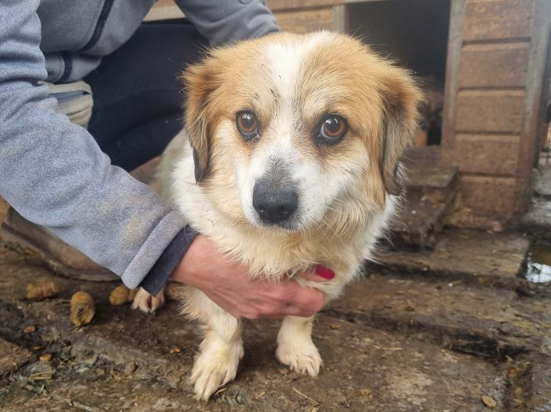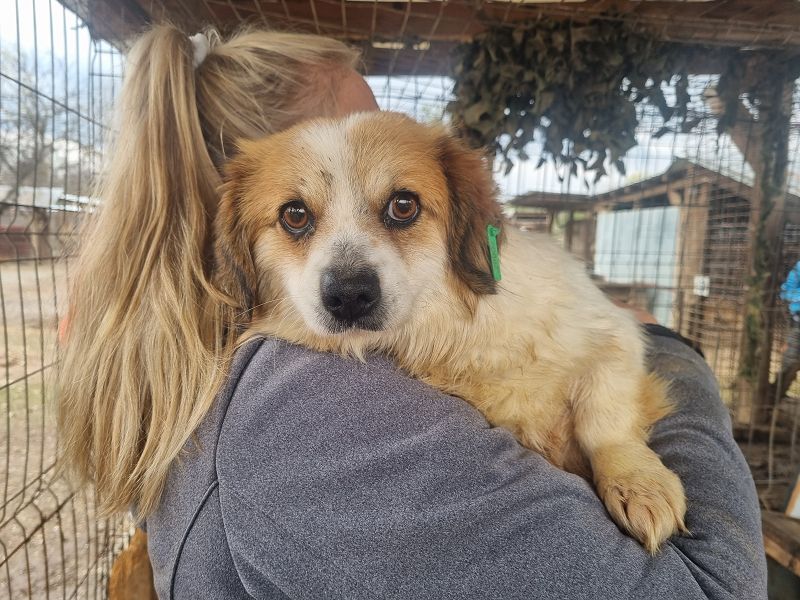 Milli entdeckten wir in Rumänien im Tierheim in einem der Welpenzwinger. Wir schätzen sie auf ca. 4 Jahre und man konnte sehen, dass sie selbst schonmal Welpen hatte. Dort sitzt die, gerade mal 31cm, kleine Maus auf engstem Raum mit Hundekindern die jetzt schon größer sind als sie, und nicht ihre eigenen. Man merkt ihr an, dass sie von dem ganzen Trubel müde ist und versucht sich in der Hütte wenigstens etwas auszuruhen. Ohne Abwehrverhalten ließ sich Schneckchen von uns auf den Arm nehmen und auch überall streicheln. Genießen konnte sie es jedoch noch nicht und sie machte einen leicht überforderten Eindruck. Nur ihre großen, braunen Rehaugen bewegten sich und es wirkte als müsse sie ihre Umgebung erstmal richtig wahrnehmen. Als wir sie absetzten, blieb sie still stehen und schaute uns fragend an. Zum ganzen Stress mit den Welpen kommt derzeit noch hinzu, dass direkt hinter ihrem Zwinger Bauarbeiten stattfinden, was zusätzlichen Lärm für die sanfte Seele bedeutet.